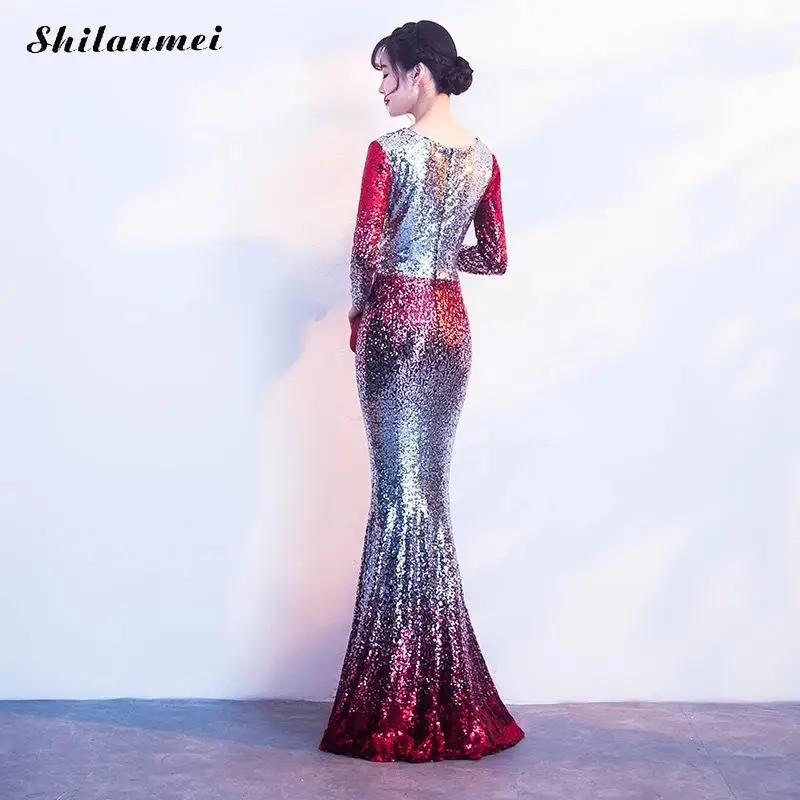 НЕТ: 190330080138 Вес: 1200 грамм Размер: Женское длинное платье-русалка, вечернее платье в пол с блестками и длинным рукавом, весна-лето 2019