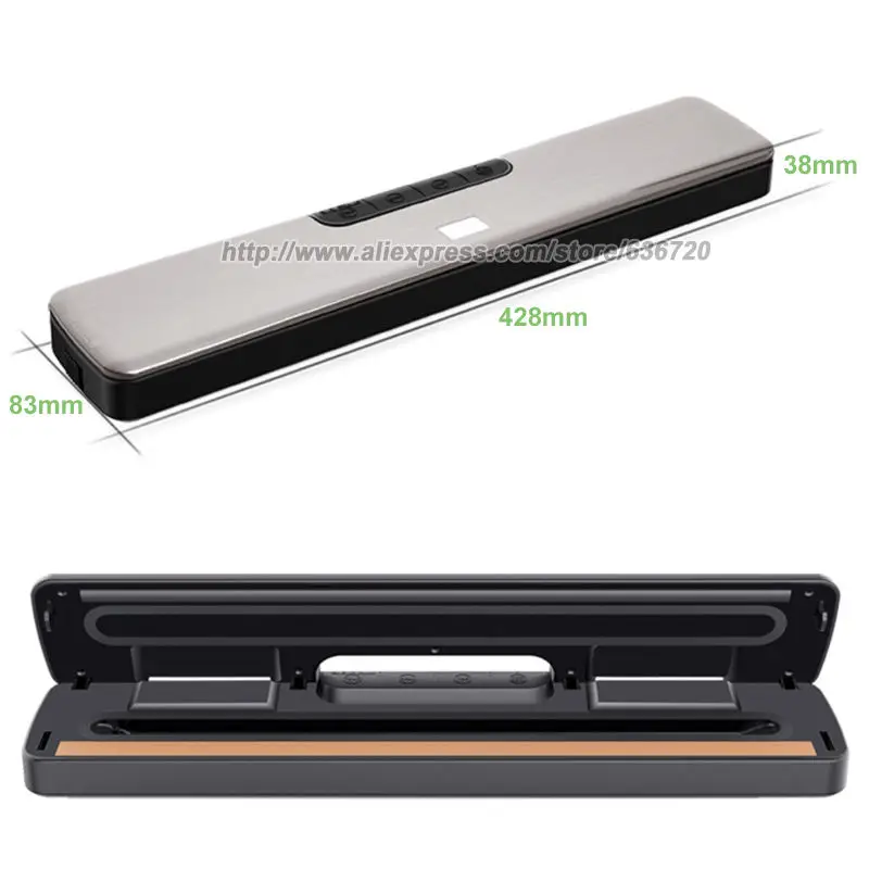 Вакуумный упаковщик имеет красивый внешний вид в премиум-металле, используя новую концепцию дизайна, уплотнительная крышка спроектирована так, чтобы быть изогнутой и с небольшим треугольником помещается в уплотнительный порт вакуумной машины, чтобы избежать дробления уплотнительного порта, когда он не используется. Маленький и очень тонкий корпус; Обеспечивает 340 мм/13,38 дюйма большой размер уплотнения. Занимает мало места на кухне и очень легко моется.