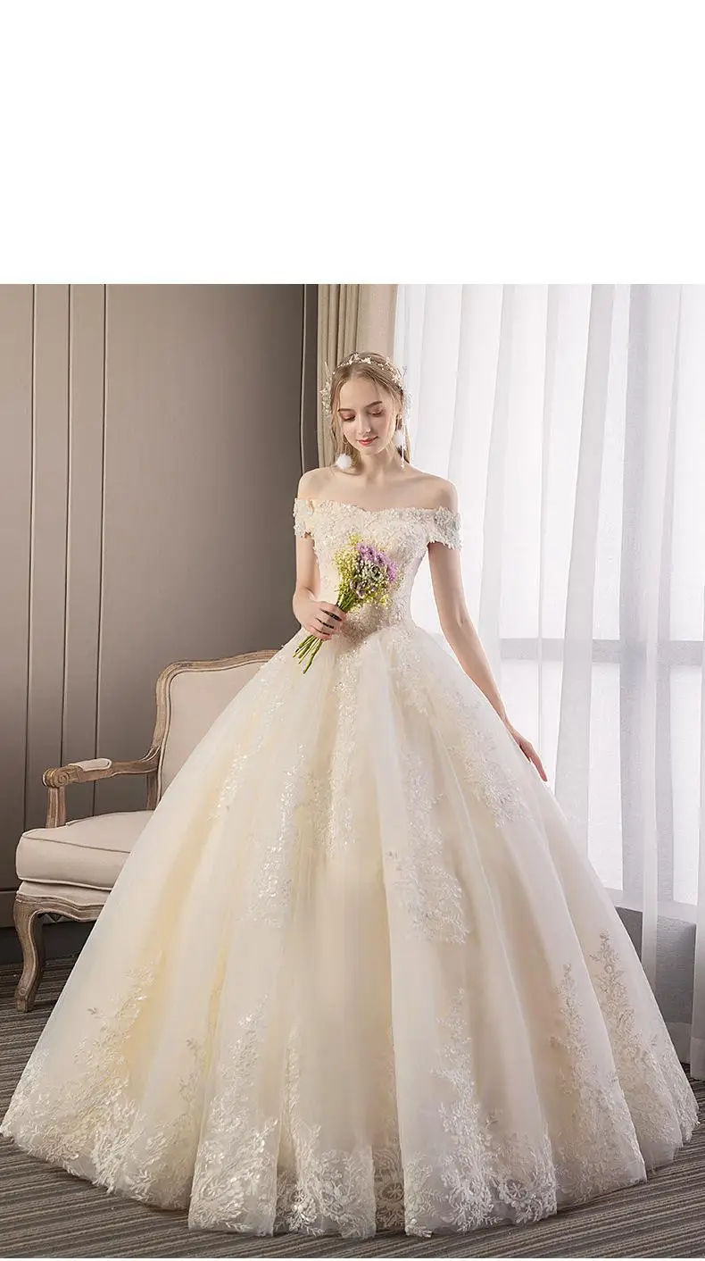 Свадебное платье с цветочным узором, Элегантное свадебное платье принцессы с вырезом лодочкой и кружевом шампанского, винтажное платье, 2019