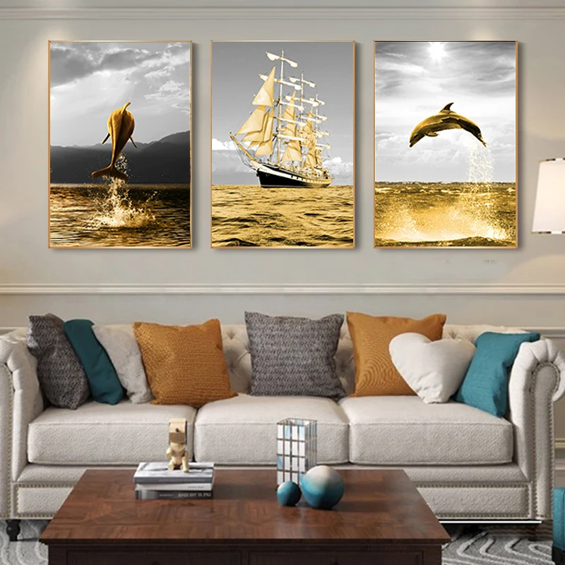 3 Панели HD печать картина маслом холст картина Акула морской пейзаж холст настенная живопись современное домашнее украшение Настенная картина