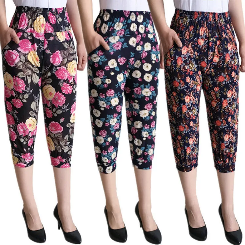 Большие размеры хлопок национальный ветер цветок брюки длинные брюки свободные колготки Мать платье шаровары женские тонкие секции