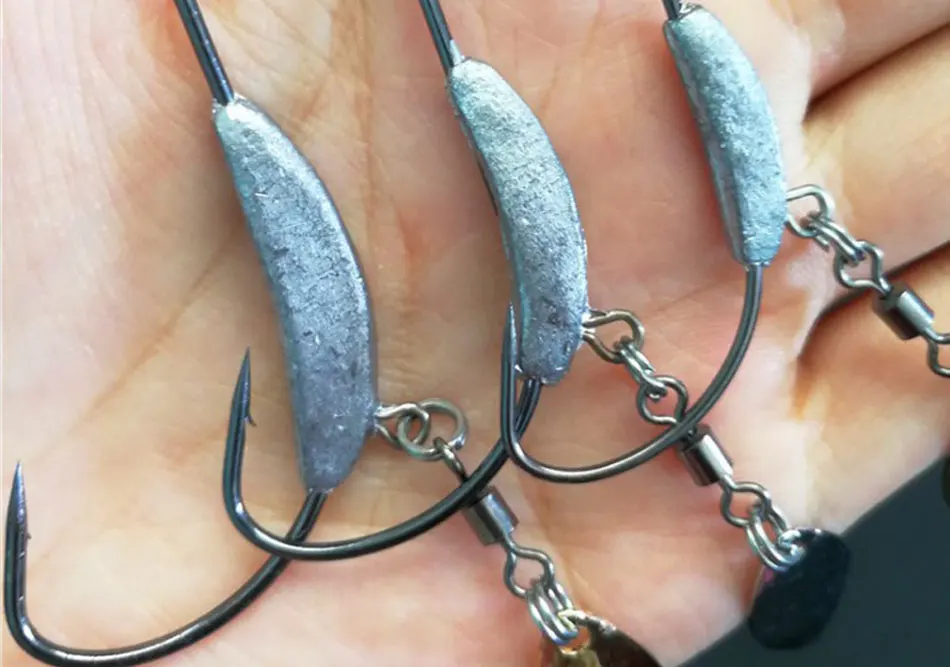 JYJ 3 шт./лот офсетные рыболовные крючки свинцовый вес ed кривошипный крючок с ложкой мягкие приманки крючок добавить свинцовый вес червячный крючок