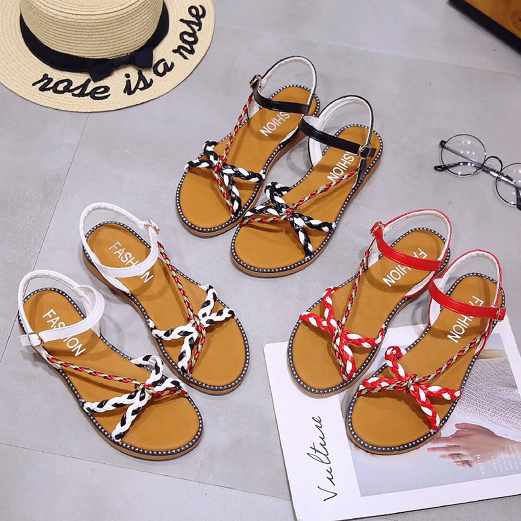 Модные летние женскиеПовседневные сандалии с закрытым носкомМореДикий РимскийОТуфли на плоской подошве с острым носком и ремешком с пряжкой; Туфли на низком каблукеНа открытом воздухе Обувь