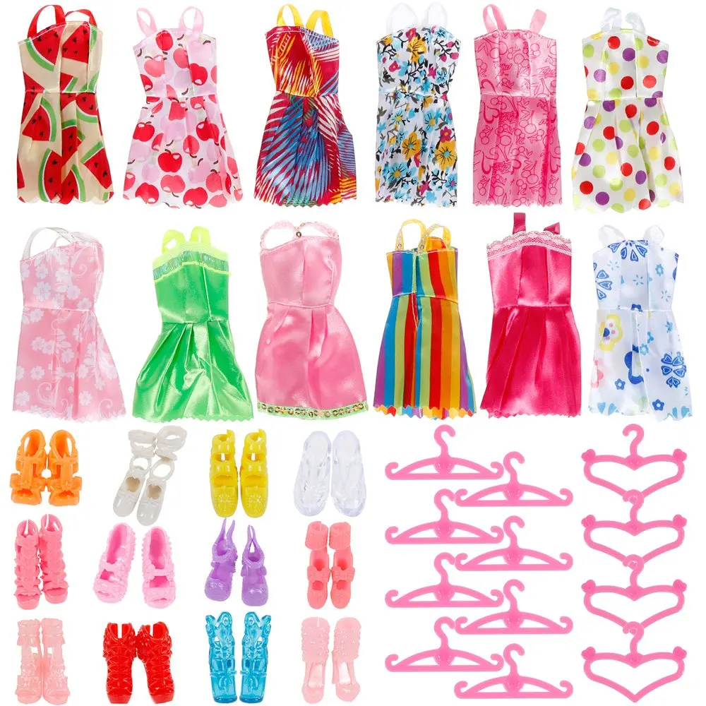Упаковка 4: комплект из 48 предметов (платья для кукол + обувь + вешалки)