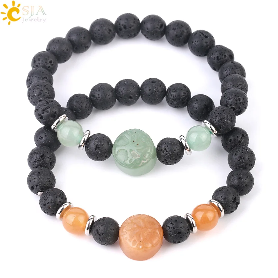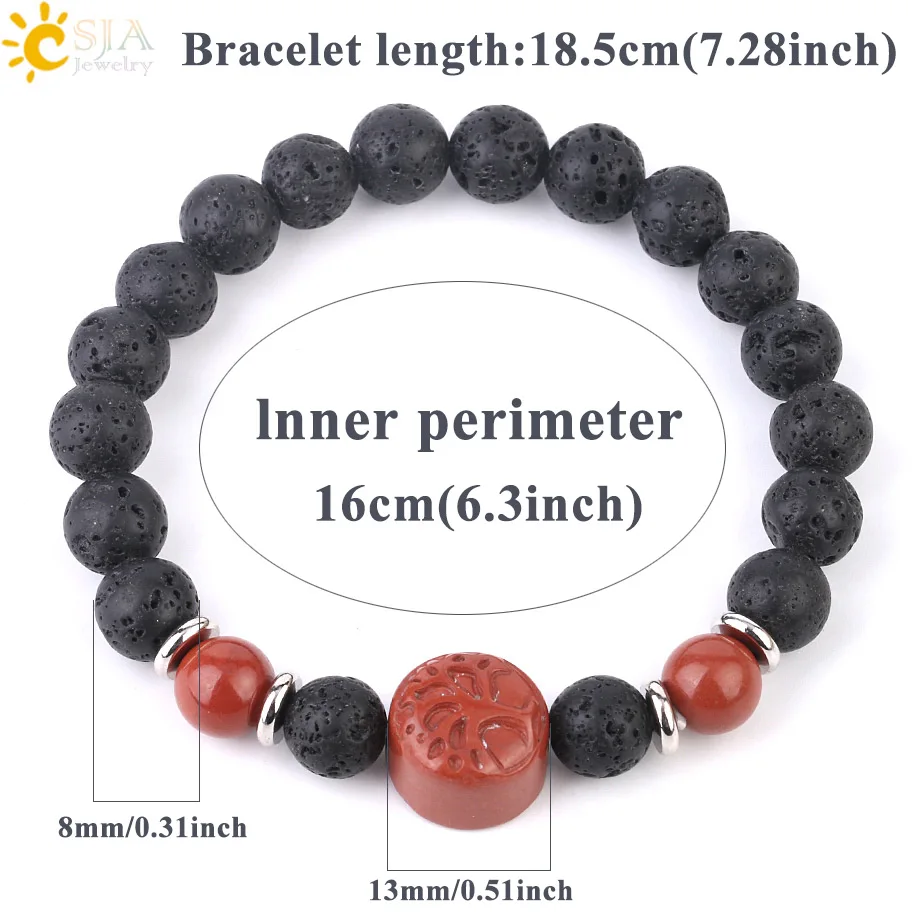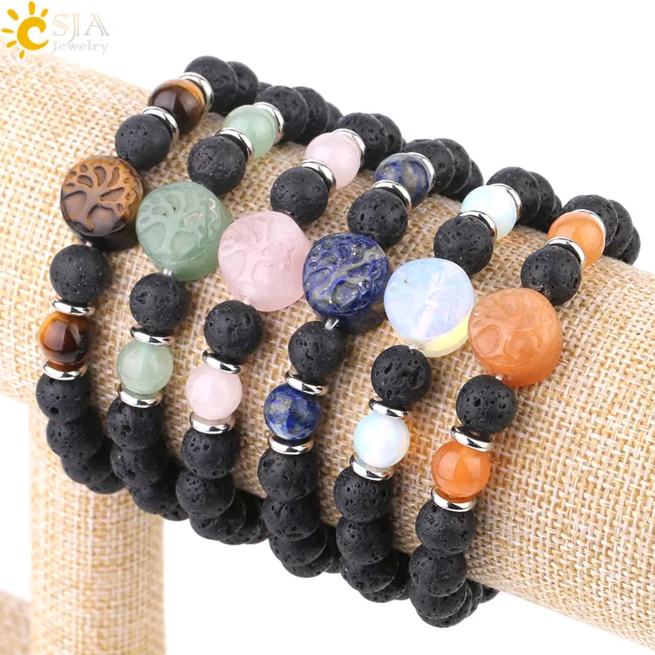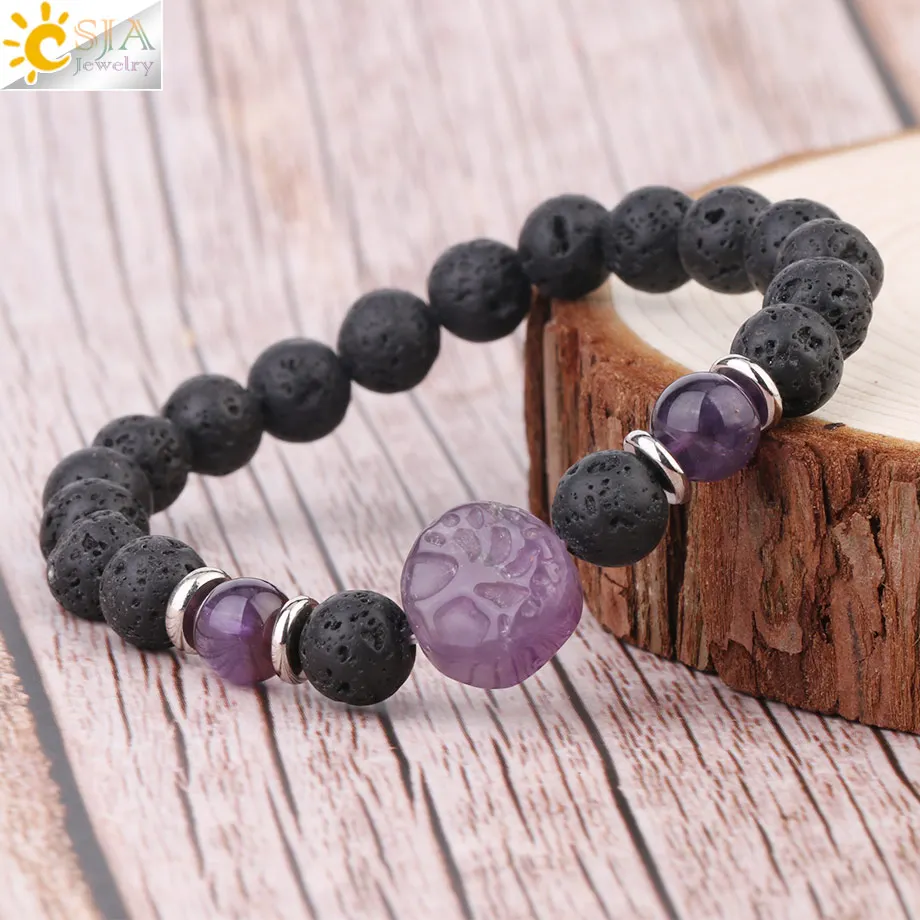 Браслет из натуральной лавы CSJA с гравировкой Дерево жизни большой бисер фиолетовый кристалл Lapis розовый кварц эластичные браслеты для мужчин и женщин G005 |