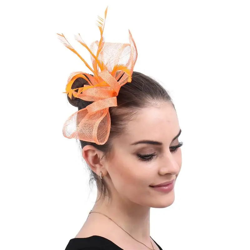 Европейская и американская мода с креативным бантиком оранжевая льняная сетка Свадебные шапки ручной работы свадебные аксессуары простые и элегантные