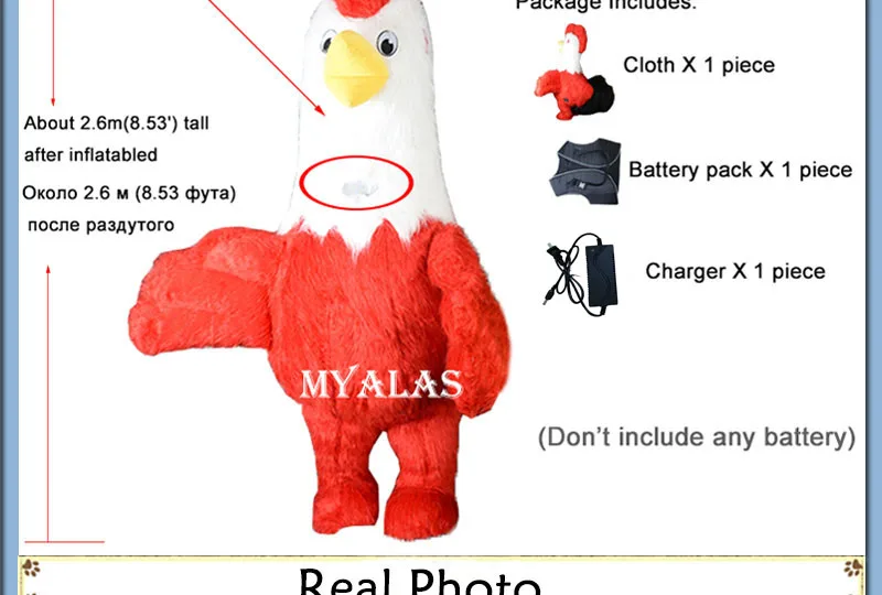 Rooster Inflatable Costumes Cock Halloween Mascot Costume for Adults Men Women Party Plush Costume 2.6m tall Red And Yellow Color