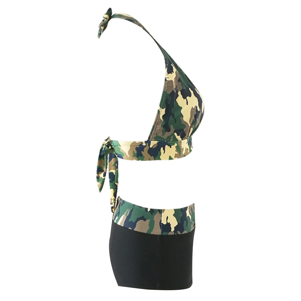 Особенности: Камуфляжный принт, открытая спина,Холтер,Бандаж