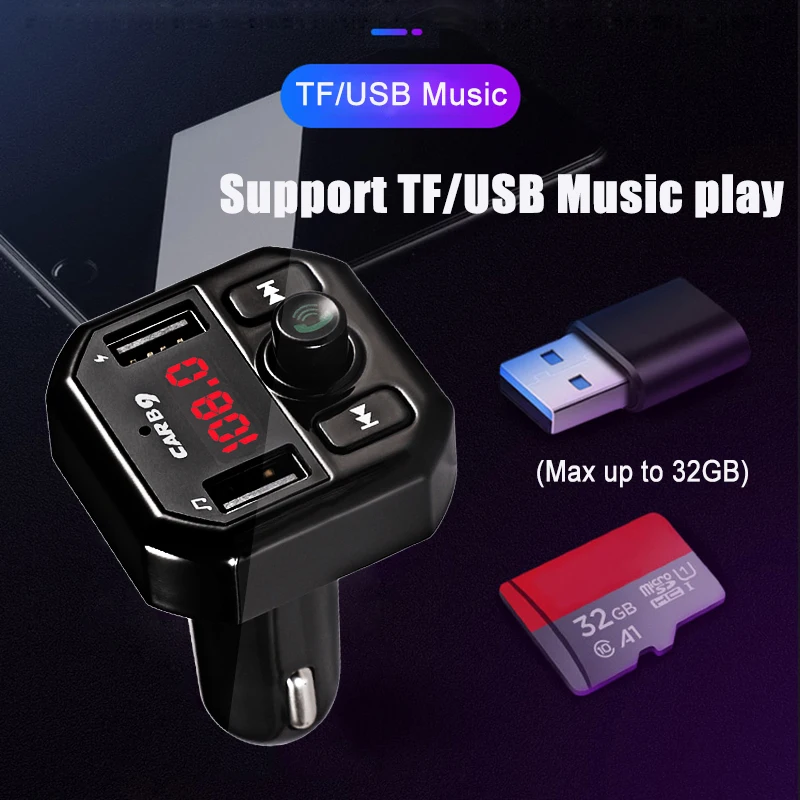 Особенности: Беспроводная передача телефонного звонка с Bluetooth мобильный телефон в автомобильную стереосистему FM. Переключение в режим hands-free автоматически от состояния воспроизведения музыки при приеме звонков. Встроенный микрофон. Двойной USB диск/micro SD карта. Прочный и элегантный дизайн с светодиодный дисплеем частоты. С голосовыми подсказками. Спецификация: Тип: Автомобильный fm-передатчик Количество: 1 шт. Цвет изделия: как показано Версия Bluetooth: V4.1 Протокол Bluetooth: AVRCP, HFP, A2DP Частотный диапазон: 87,5-108 МГц Стабильность частоты: ± 10ppml Вход: 12-24 В Формат музыки: MP3, WMA Карта Micro SD (макс.): 32 ГБ Usb-диск (макс.): 32 ГБ Общая мощность: 5 В/3,1 А