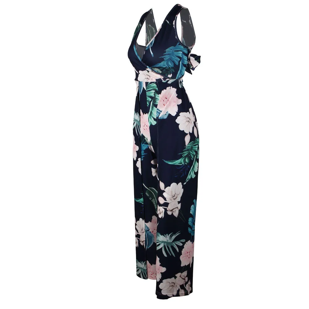Женский комбинезон с широкими штанинами, Свободный комбинезон в полоску с цветочным принтом, модель Wd4, 2019