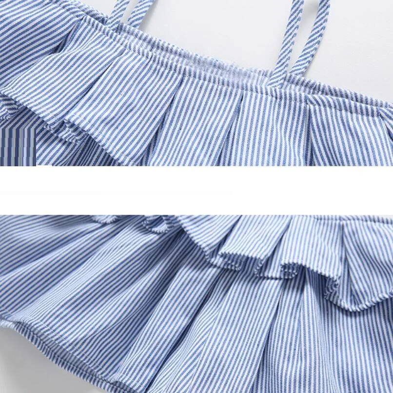 Летняя пляжная одежда Комплекты одежды для девочек комплект детской одежды для малышей, подростков, детский полосатый топ на бретелях + штаны, комплект из 2 предметов, JW4772