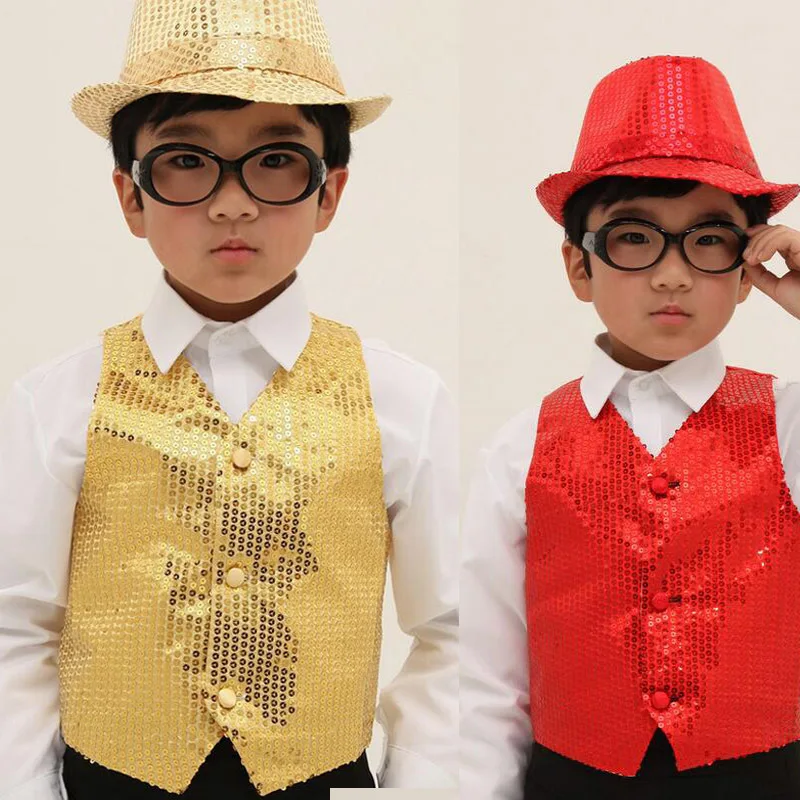 Детская блестящая Одежда для мальчиков, костюмы для хора и выступлений, детские костюмы для хип-хопа, джазового танца с блестками, жилетка для сценического танца