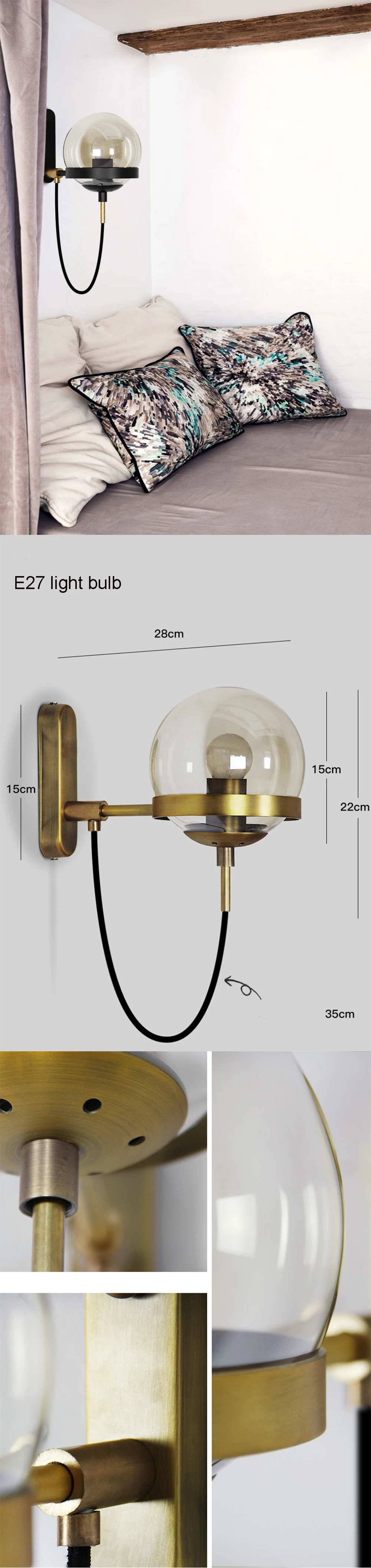 Скандинавский винтажный настенный светильник, латунный светильник 110-220 В, светильник для внутреннего освещения, антикварная прикроватная лампа, деревенский настенный светильник, светильники