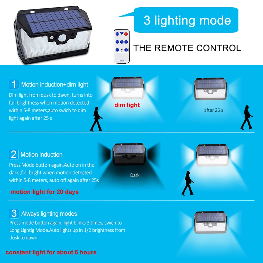 Светильник с углом обзора 270 градусов, большая емкость солнечной панели и батареи, супер яркий светильник на более большую площадь, светильник на 400 квадратных футов.