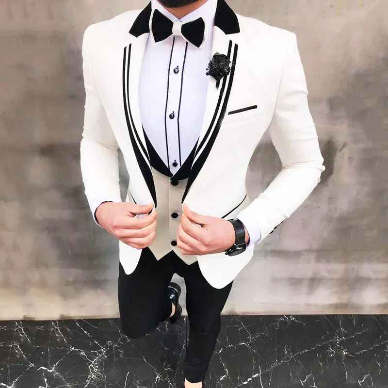 2020 последний дизайн пальто брюки белые мужские свадебные костюмы костюм мужской Жених Блейзер смокинг приталенный костюм Pour Hommes Terno Masculino (пиджак + брюки + жилет)