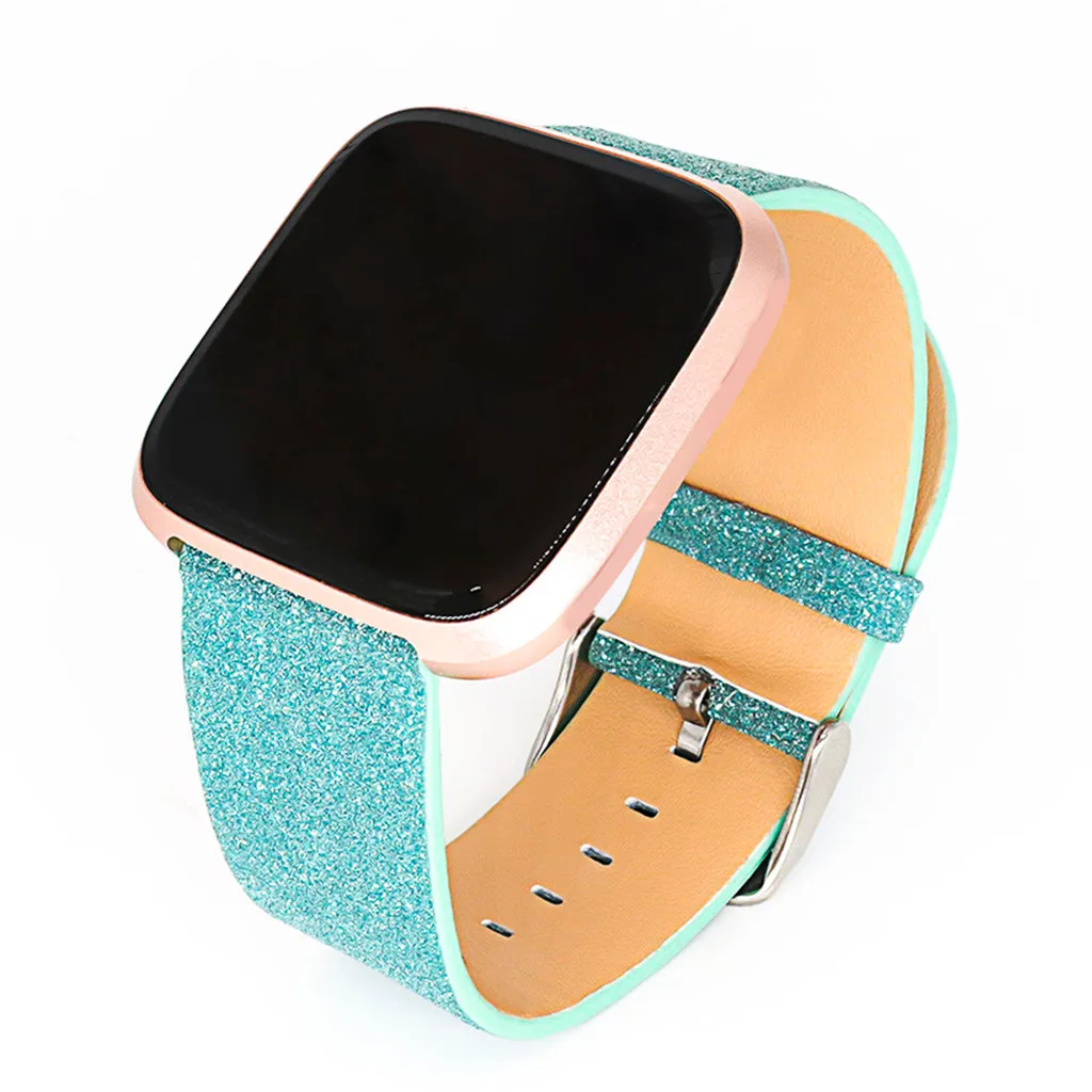Шикарный квадратный блестящий кожаный ремешок для Fitbit Versa Lite