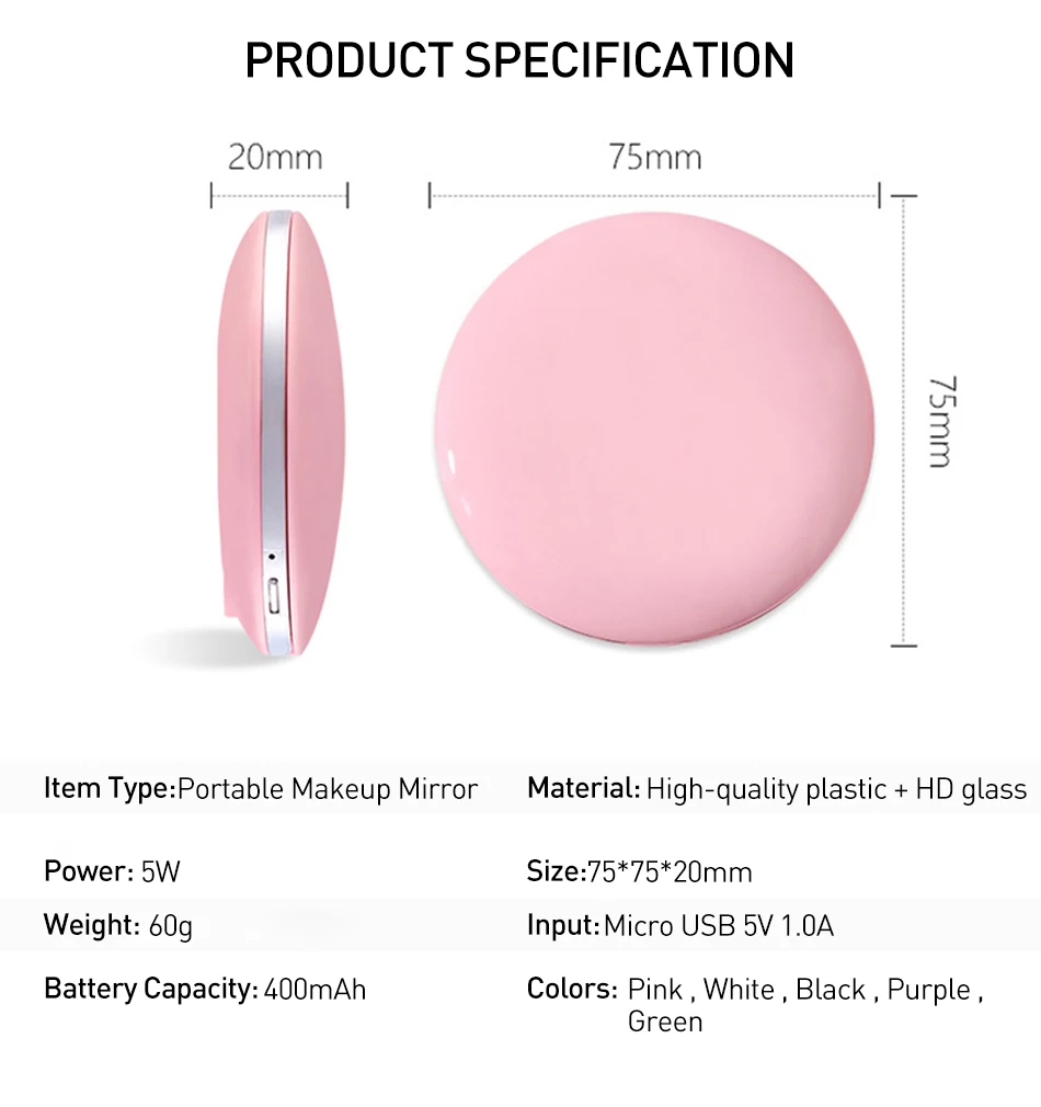 USB заряжаемое зеркало для макияжа, портативное светодиодное мини-зеркало для макияжа, 3X увеличительное круглое встроенное зеркало для макияжа Описание: Особенности:Материал: Поликарбонат + стеклоЕмкость аккумулятора: 800 мАРазмер: 75*20 ммСенсорное зеркало для освещенияБоковое зеркало, другая сторона 3X увеличительное стеклоОписание:1. Он будет освещаться, когда кто-то достигнет его или t ouching его. И может быть скорректирован на длинный светильник.2. Это зеркало для макияжа достаточно маленькое, чтобы взять куда угодно.3. Это складное 3х увеличительное зеркало, прозрачное от края до края без искажений.4. Зеркало оснащено энергосберегающими светодиодами, которые осветят ваше лицо и обеспечат естественный дневной свет для наиболее естественного вида.5. Идеальный компаньон для любой женщины. Элегантный, стильный и идеально подходящий размер для вашей сумочки или сумочки, что делает это отличное компактное зеркало для дома или путешествий.Посылка включает в себя:1 зеркало1x USB кабель![]() ![]() ![]() ![]() ![]() ![]() ![]() ![]() ![]() ![]() ![]() ![]() ![]() ![]() ![]() ![]() ![]() ![]() ![]() ![]() ![]() ![]() ![]() ![]() ![]() |