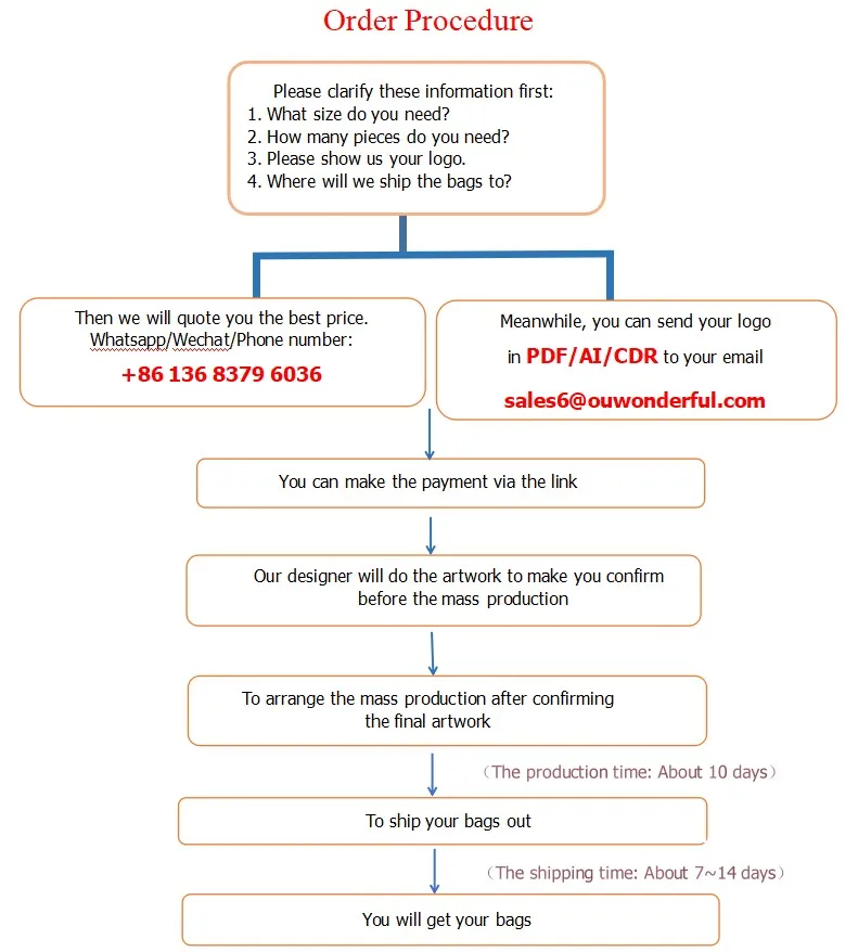 Время выполнения продукции:Как правило, нам нужно около 10 дней, чтобы отправить товар и 7-14 дней, чтобы отправить товар, в зависимости от количества и вашего логотипа.