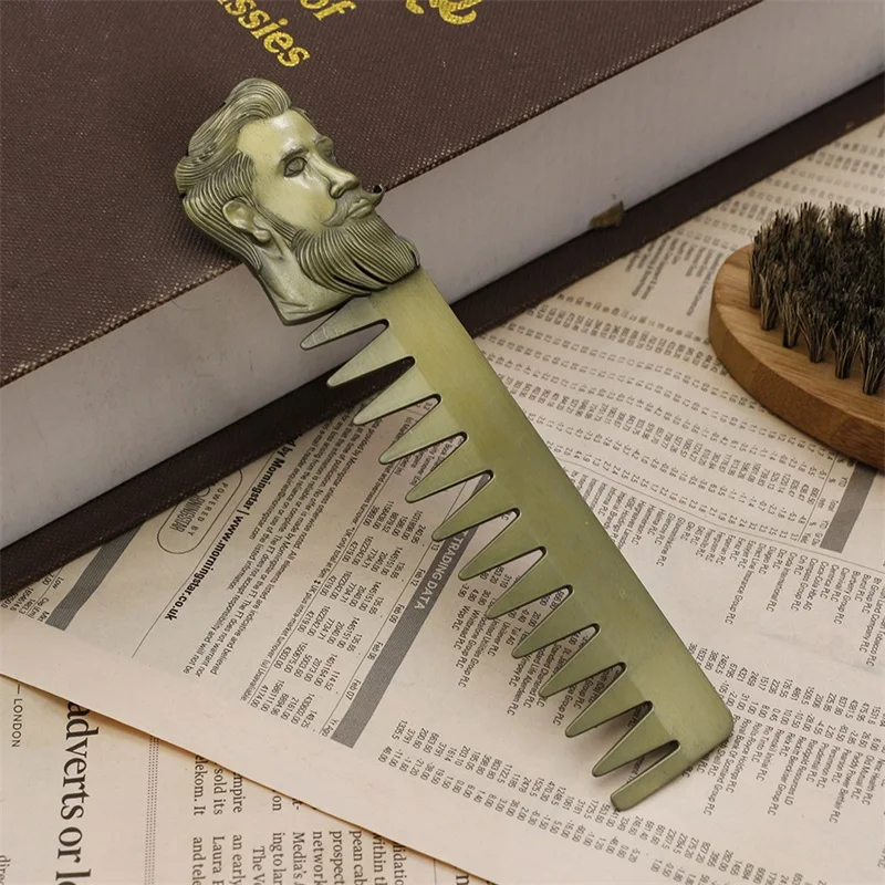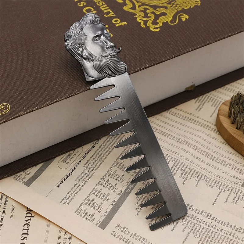 Грубая парикмахерская расческа с металлическими зубцами, афро-Расческа для мужчин, портативная борода, усы, массажные инструменты, широкий гребень, дизайн зубов