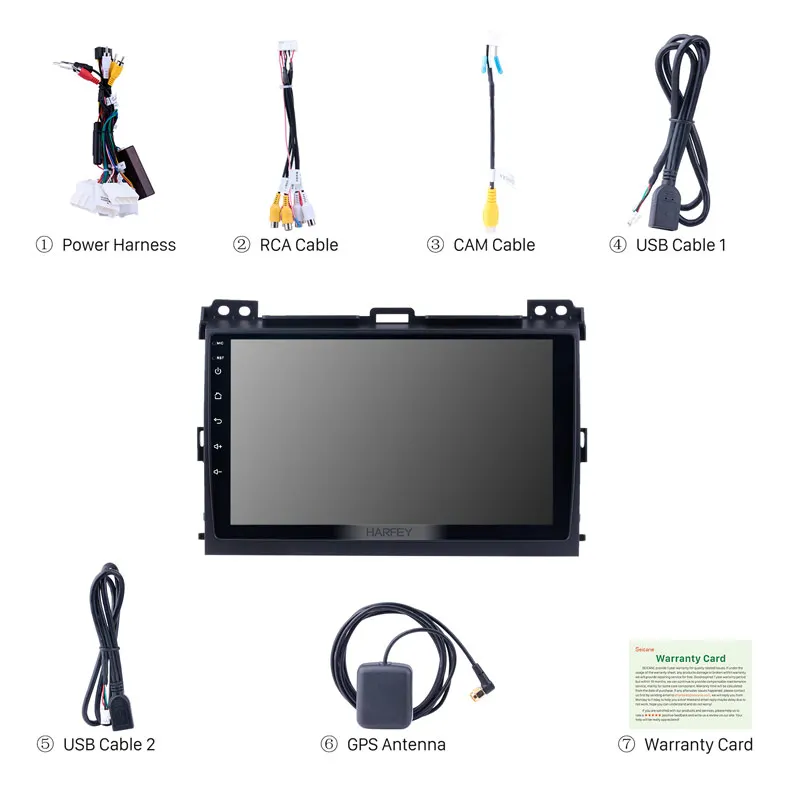 Harfey Android 8,1 автомобильный мультимедийный плеерДля 2004 2005 2006 2007 2008 2009 Toyota PradoРадио GPS навигационная система с Bluetooth HD сенсорным экраном WIFI 1080P DVR Зеркало Ссылка заднего вида