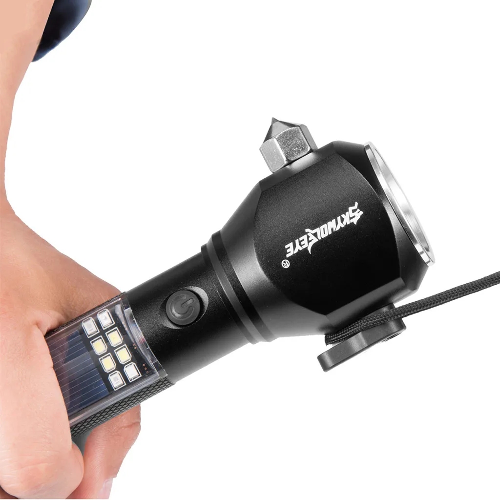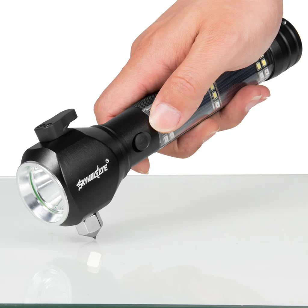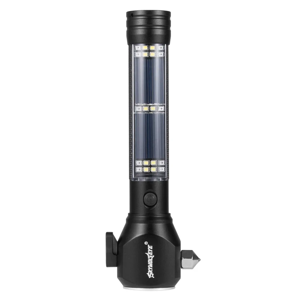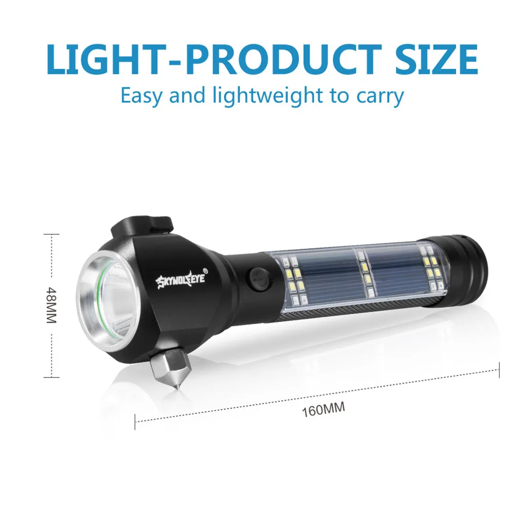 Фонарик перезаряжается, и аккумулятор может быть заряжен встроенной солнечной панелью, естественный свет легко, очень экологически чистый.