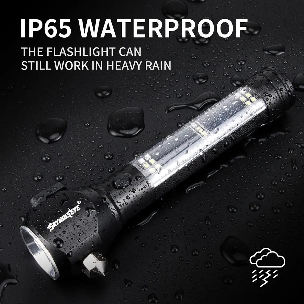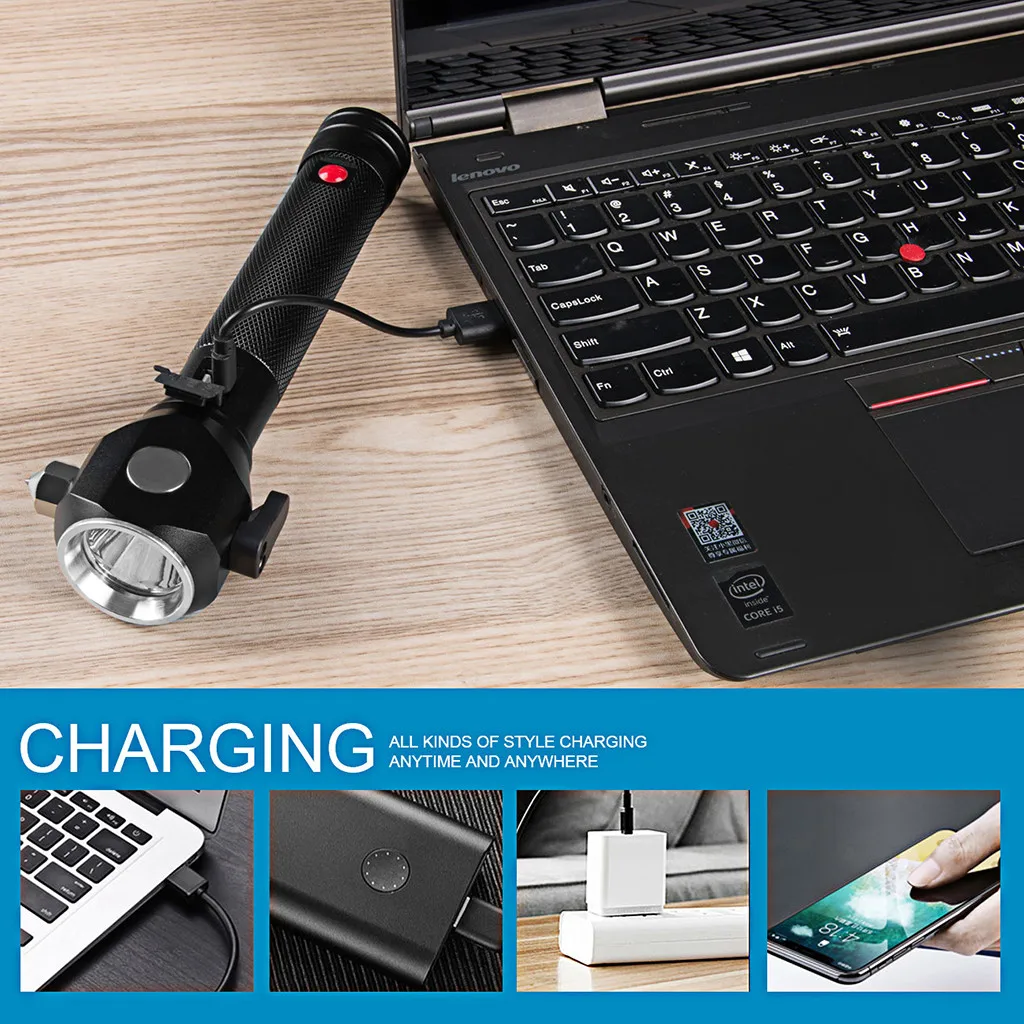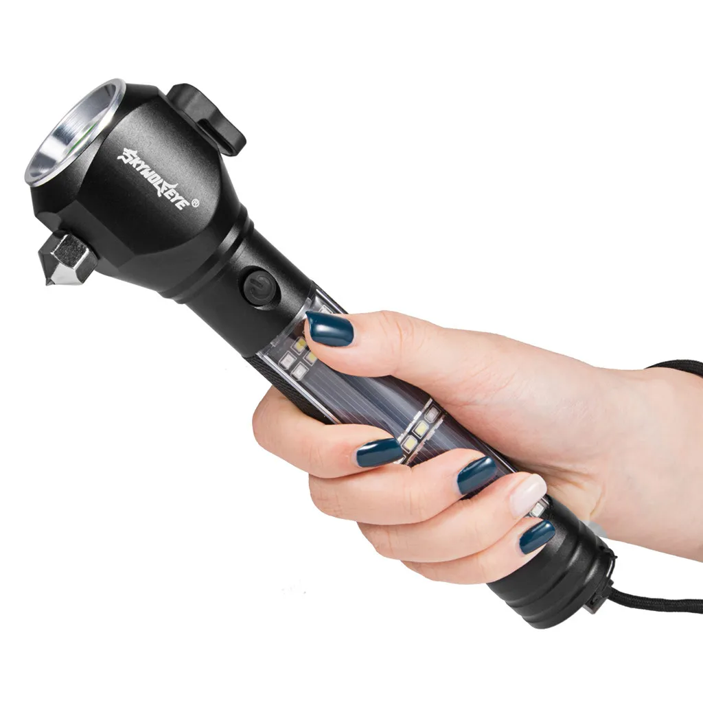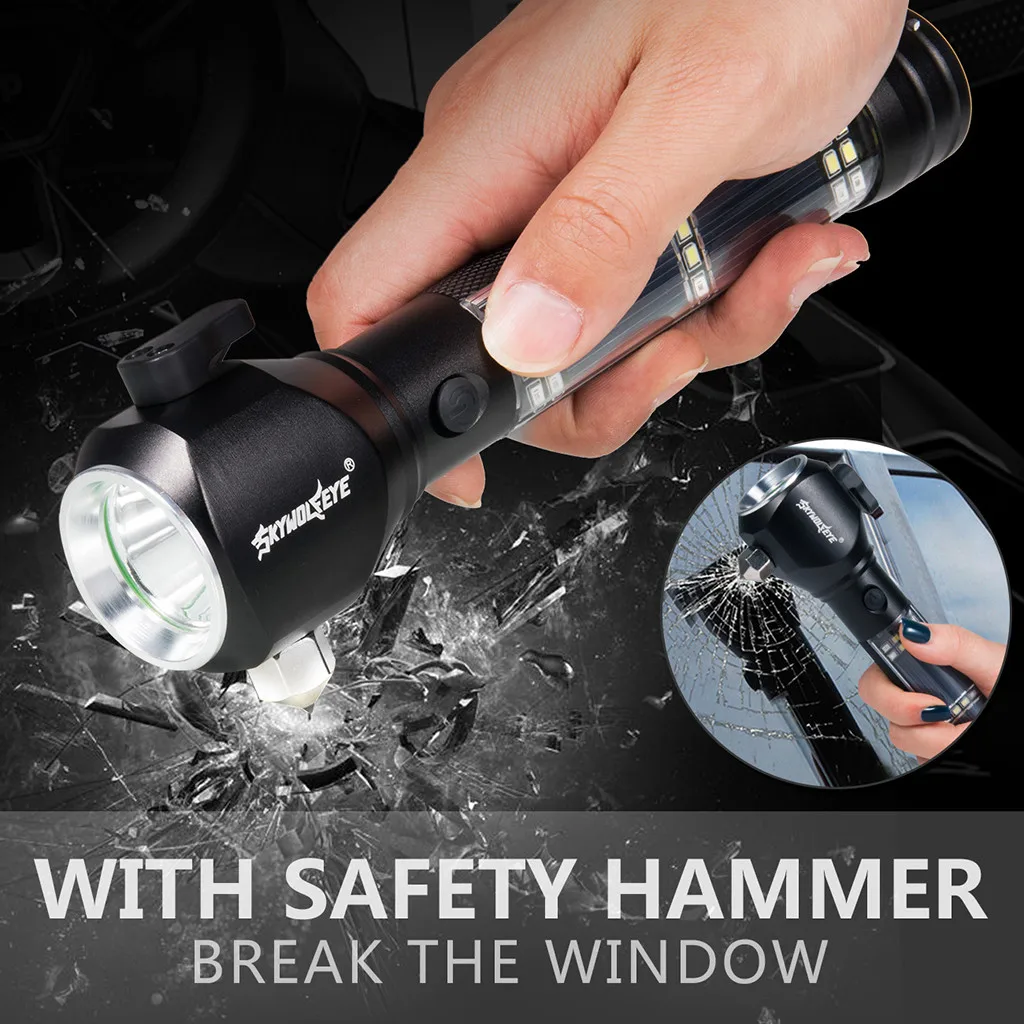 Фонарик перезаряжается, и аккумулятор может быть заряжен встроенной солнечной панелью, естественный свет легко, очень экологически чистый.