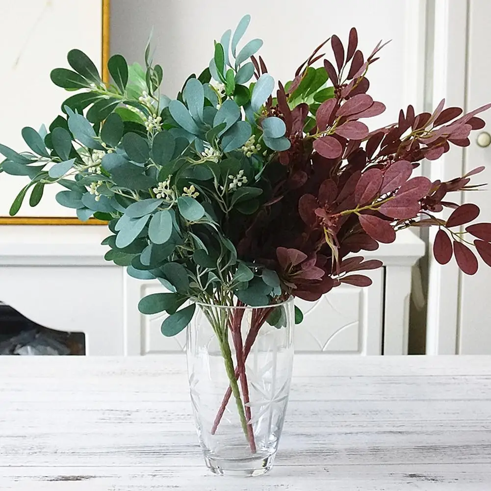 Искусственные зеленые красные листья jujujube 9 веток, поддельные Фотофон с растениями, реквизит для домашнего декора вазы
