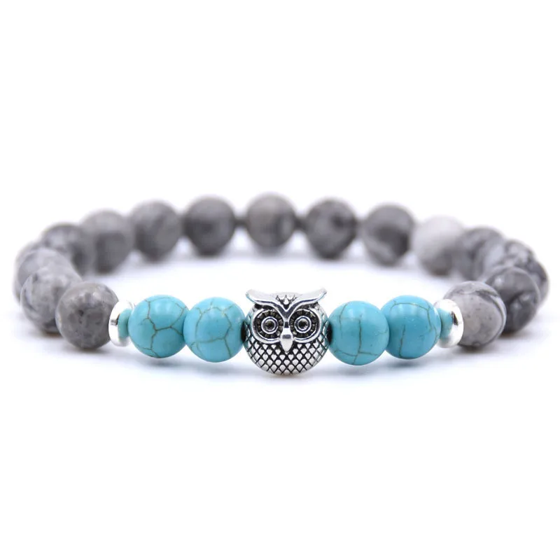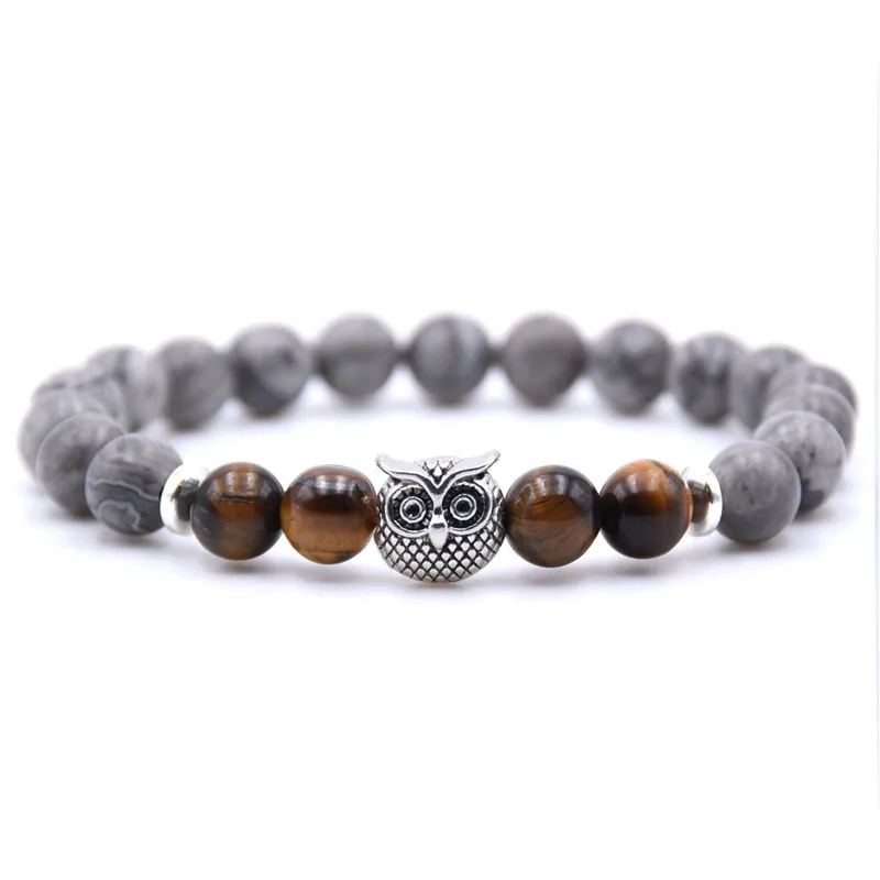 Новый Животный Сова браслет для мужчин женщин 8 мм тигровый глаз Лава разноцветный натуральный камень бисерные браслеты на запястья ювелирные изделия подарок