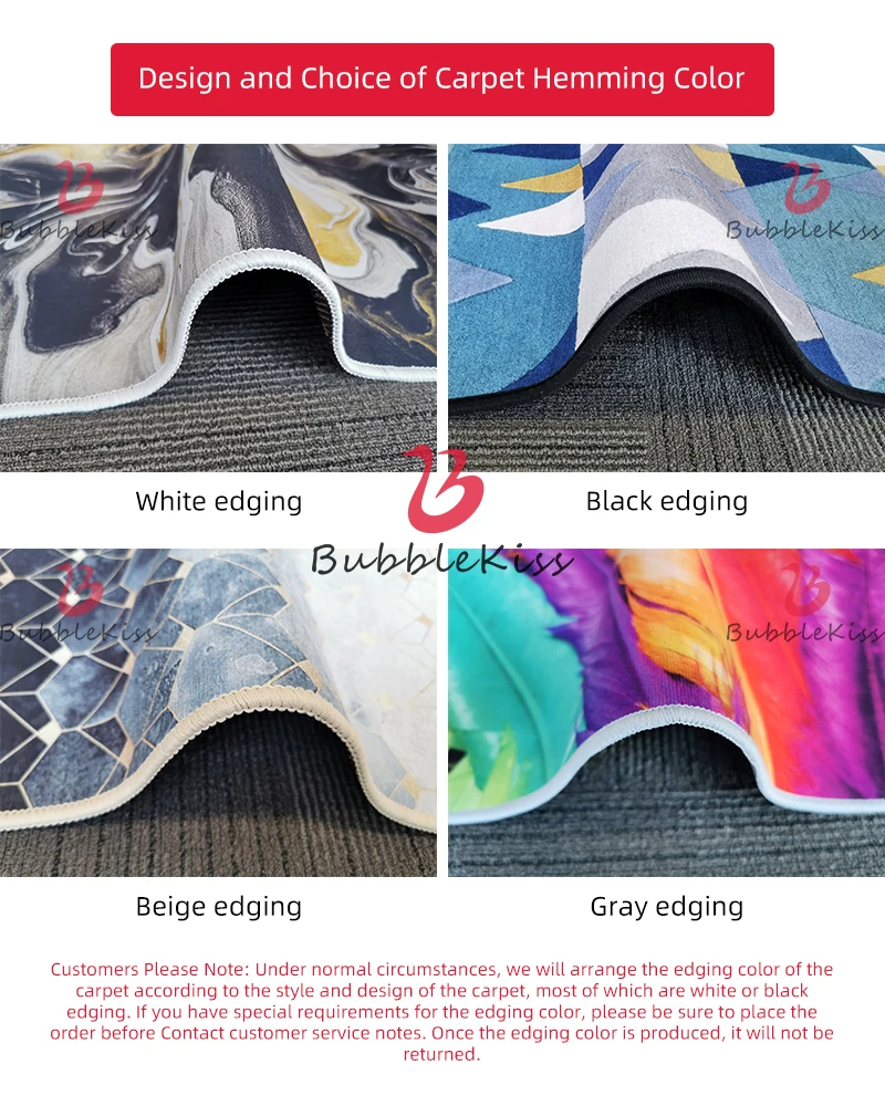 Уважаемые клиенты, наш производственный отдел недавно ввел белый кант для этого ковра. Реальные фотографии ковра следующие, общий эффект чище и красивее. Если вам нужны другие цвета для обрезки, пожалуйста, свяжитесь со службой поддержки клиентов перед оформлением заказа. По умолчанию используется белая окантовка.