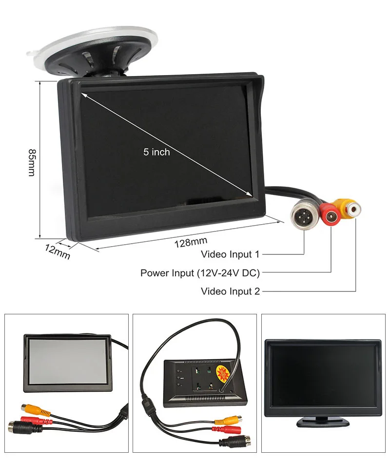 5 "автомобильный монитор с 2 видео входом +Чашечная присоска
