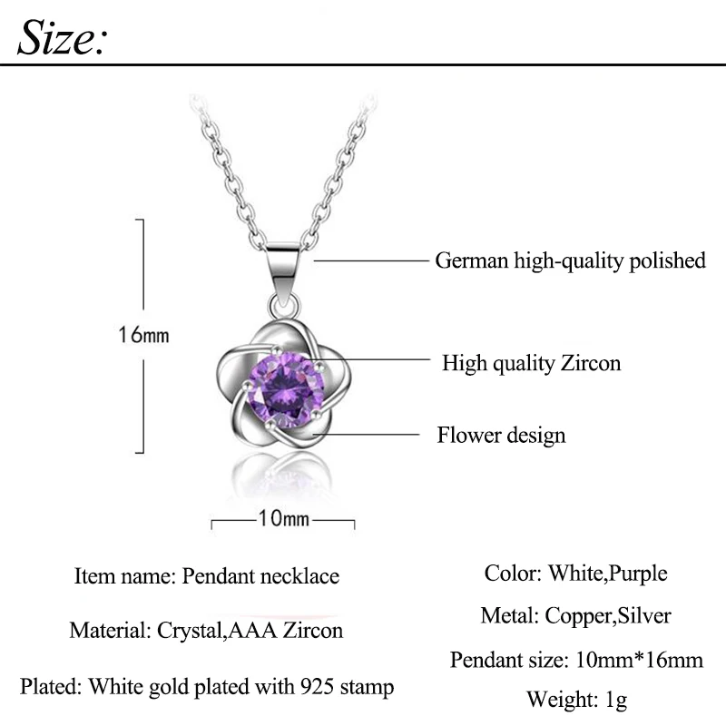 JYouHF ожерелье с подвеской в виде цветка и кристалла, Классическое Белое фиолетовое ожерелье из циркония ААА, женское Ювелирное Украшение на годовщину вечевечерние НКИ, женское колье