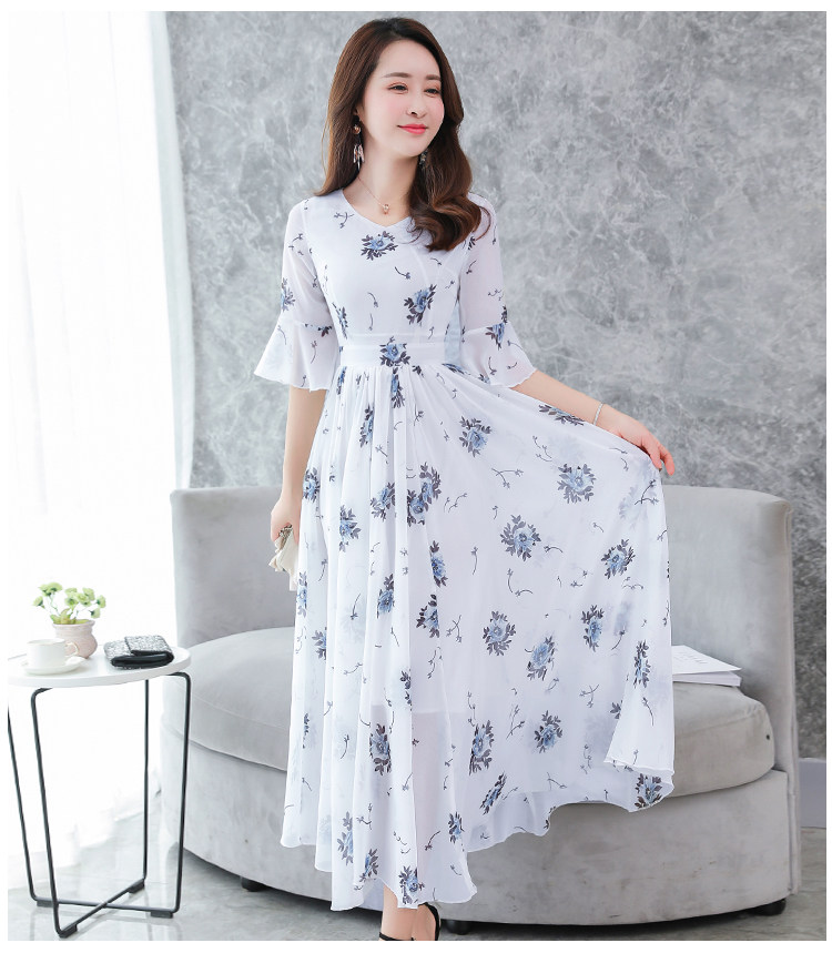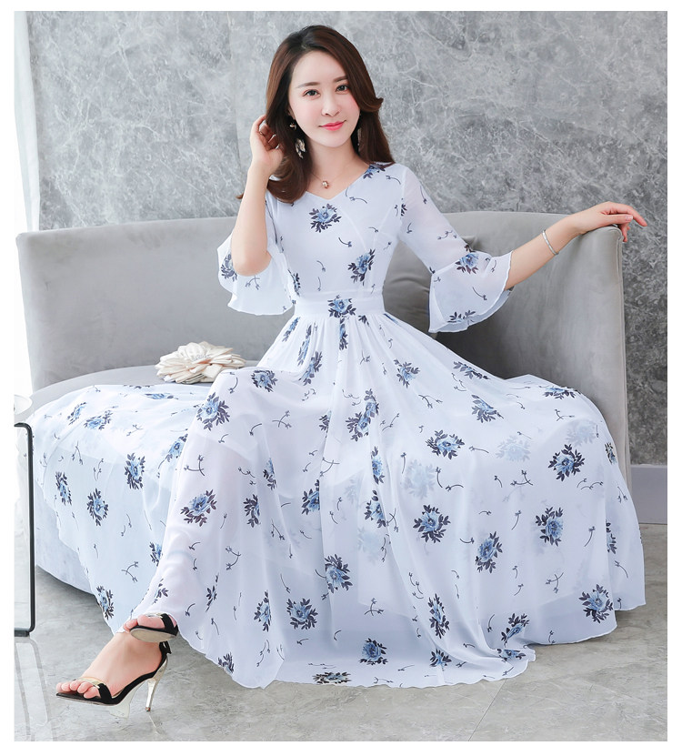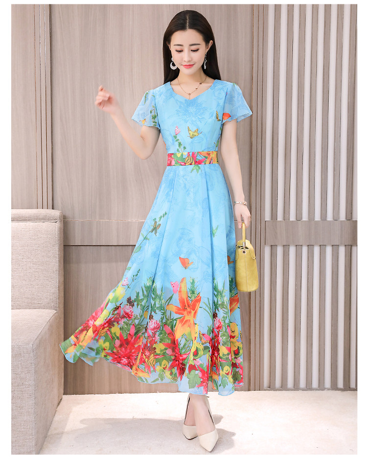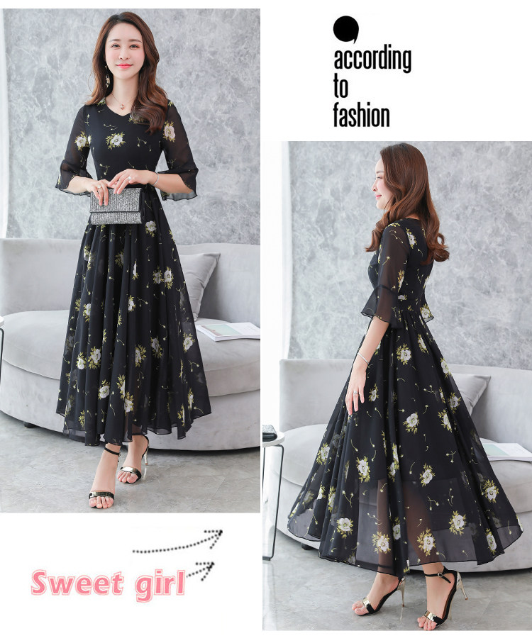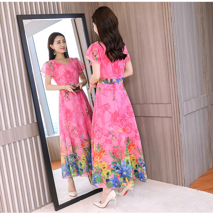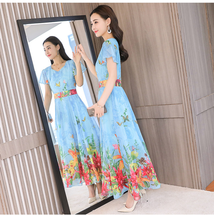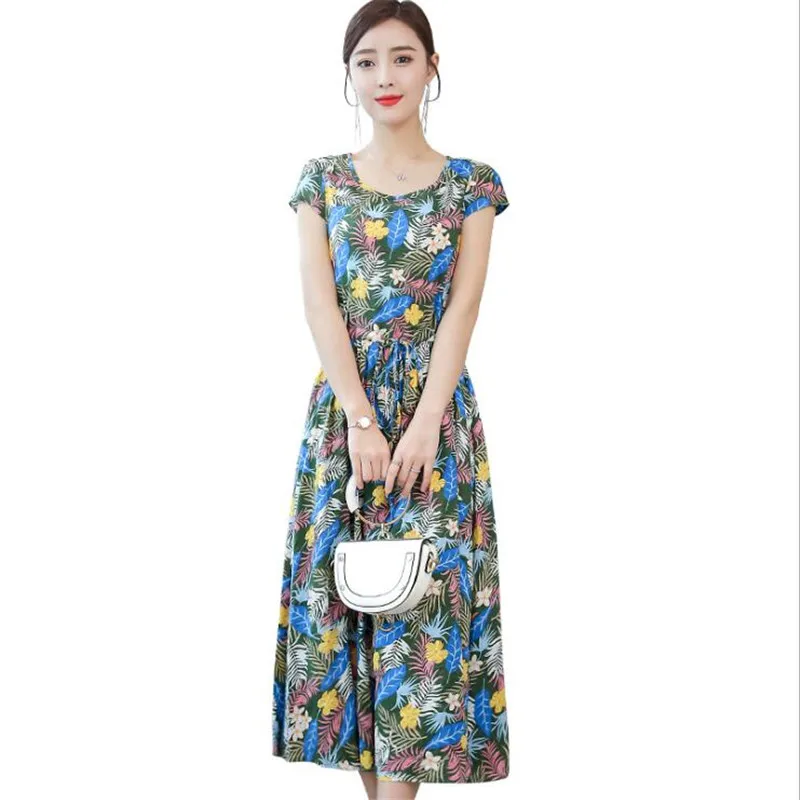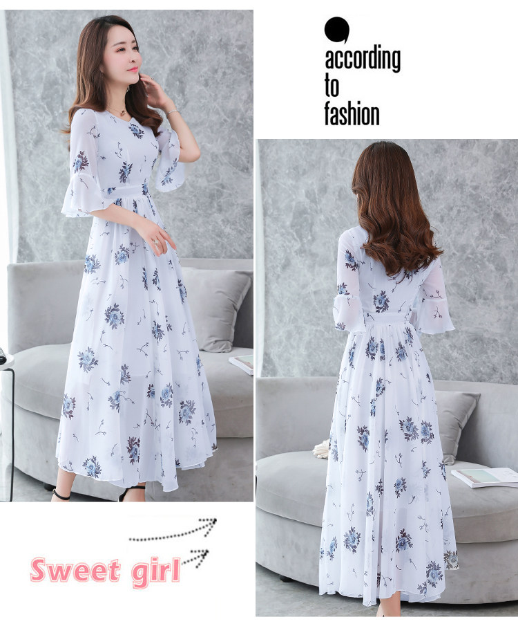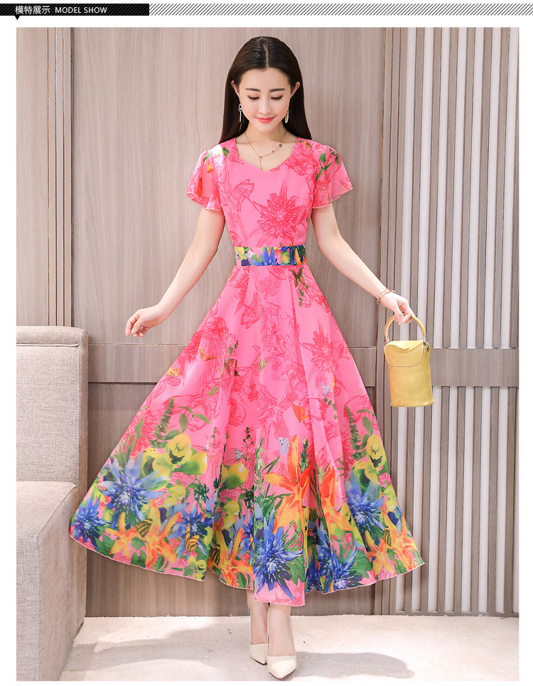Шифоновое платье для женщин 2018 Новое Женское летнее платье корейское платье Летнее Длинное платье средней длины с короткими рукавами
