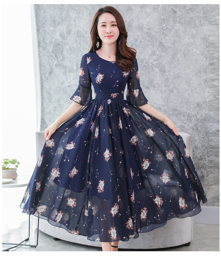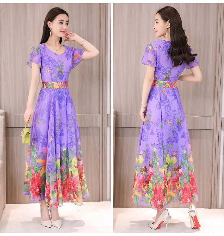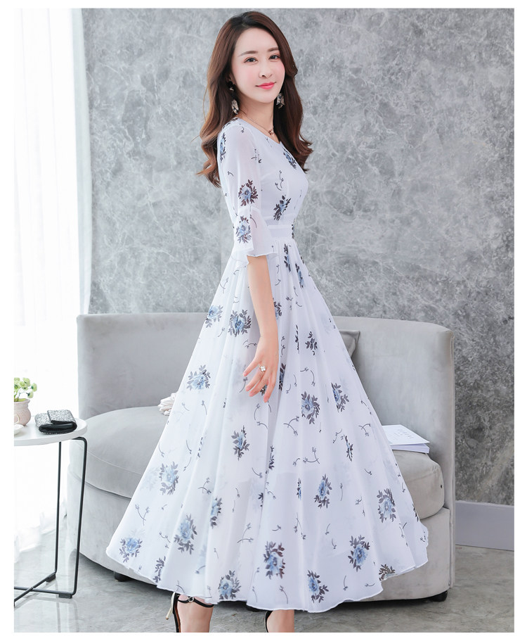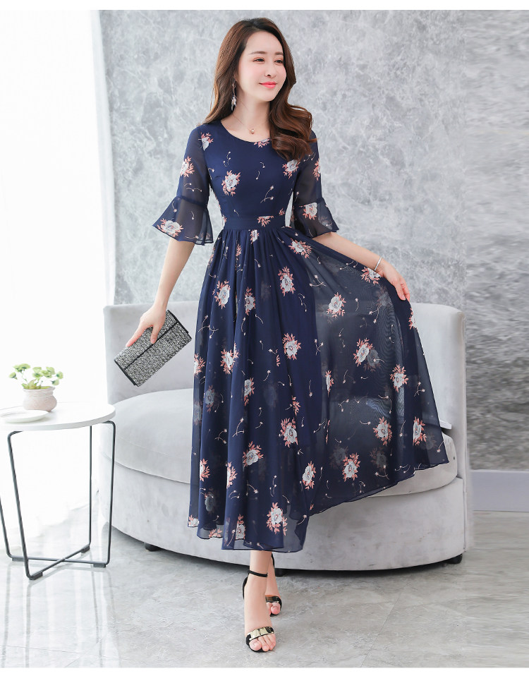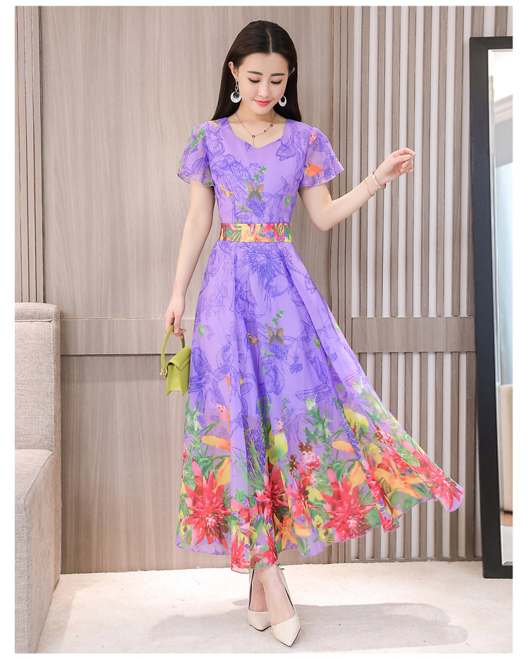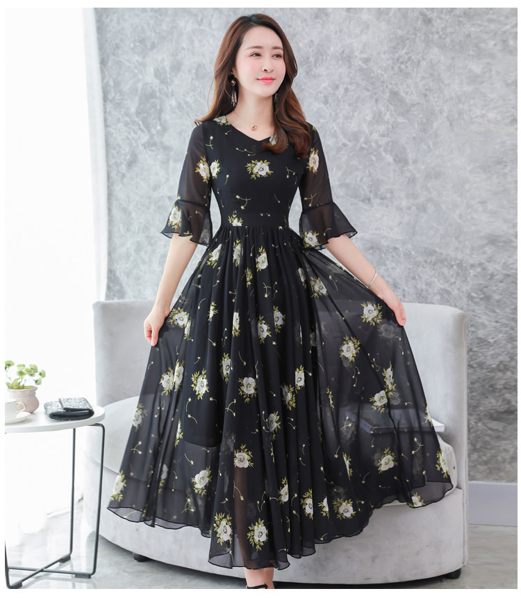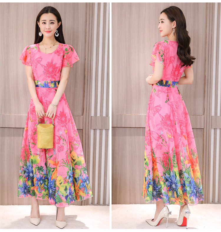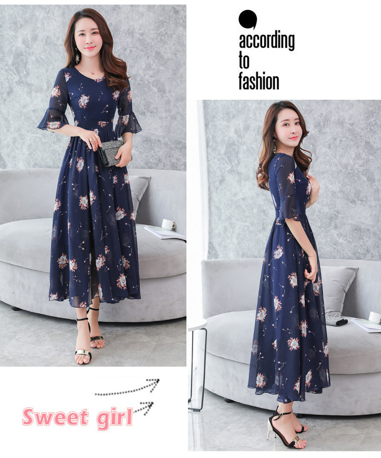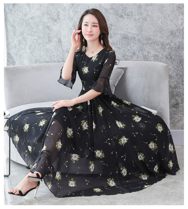 Шифоновое платье для женщин 2018 Новое Женское летнее платье корейское платье Летнее Длинное платье средней длины с короткими рукавами
