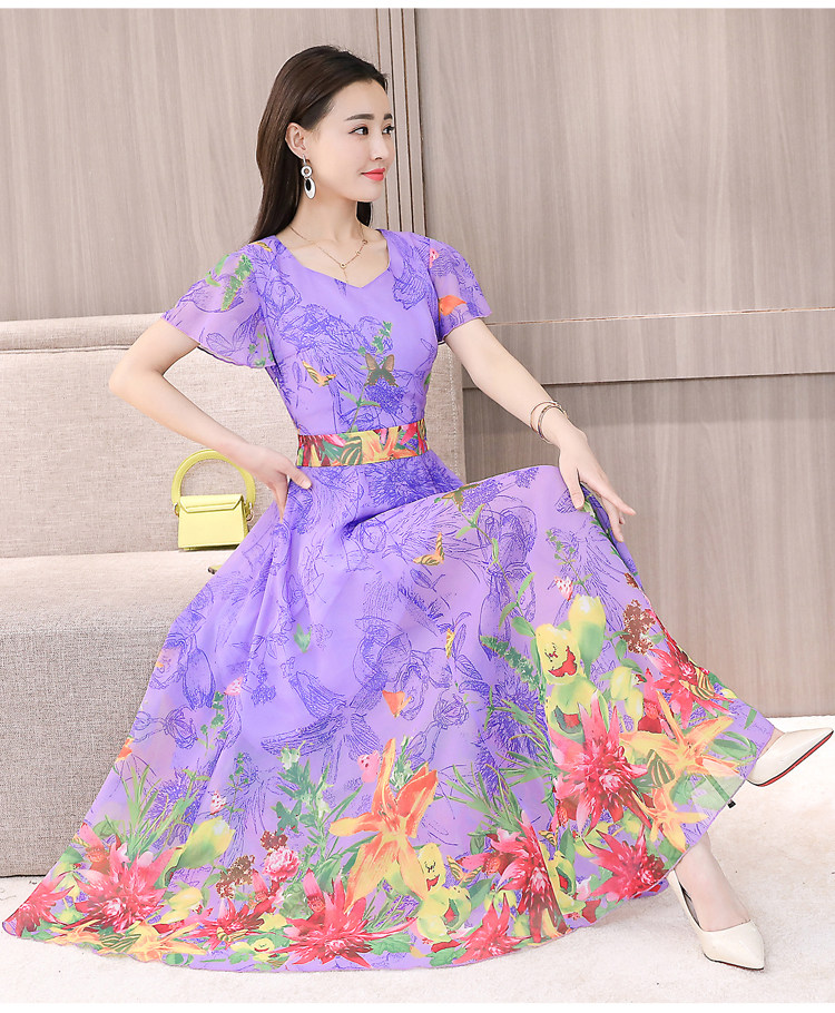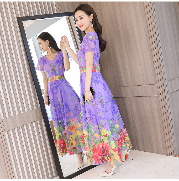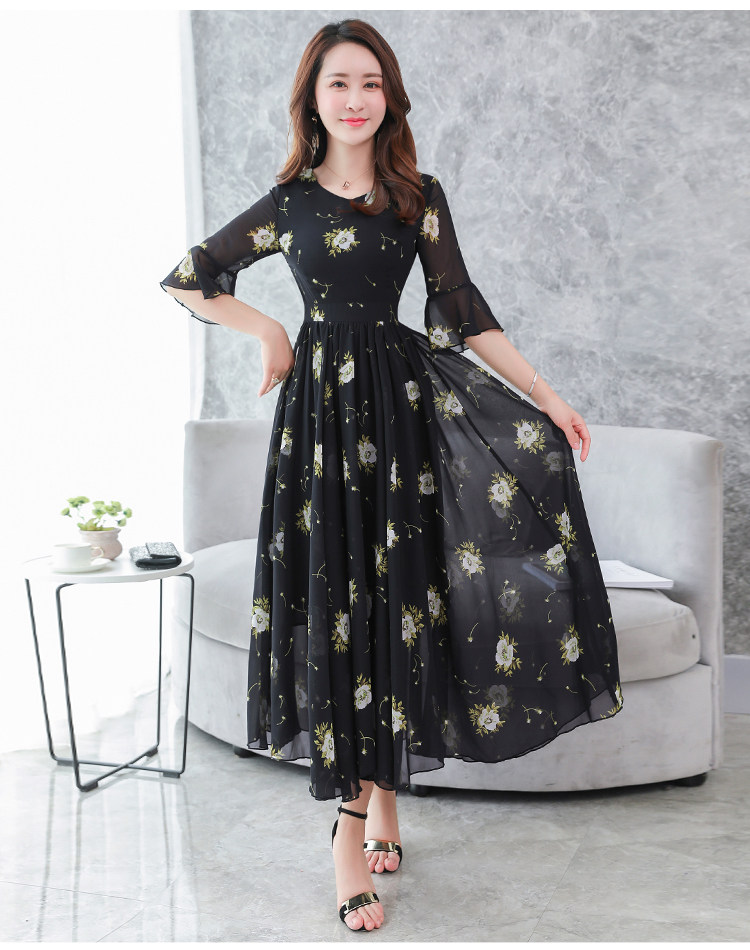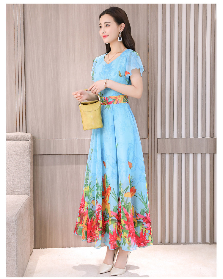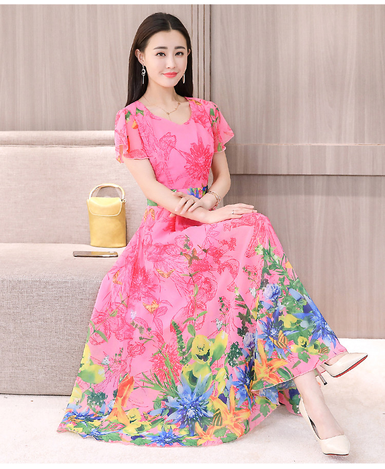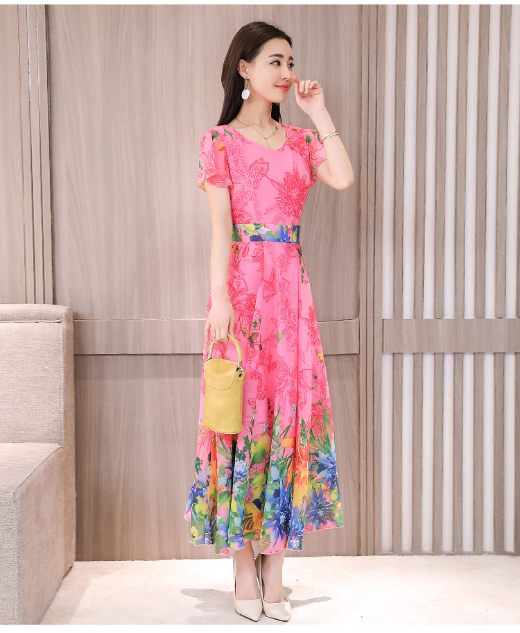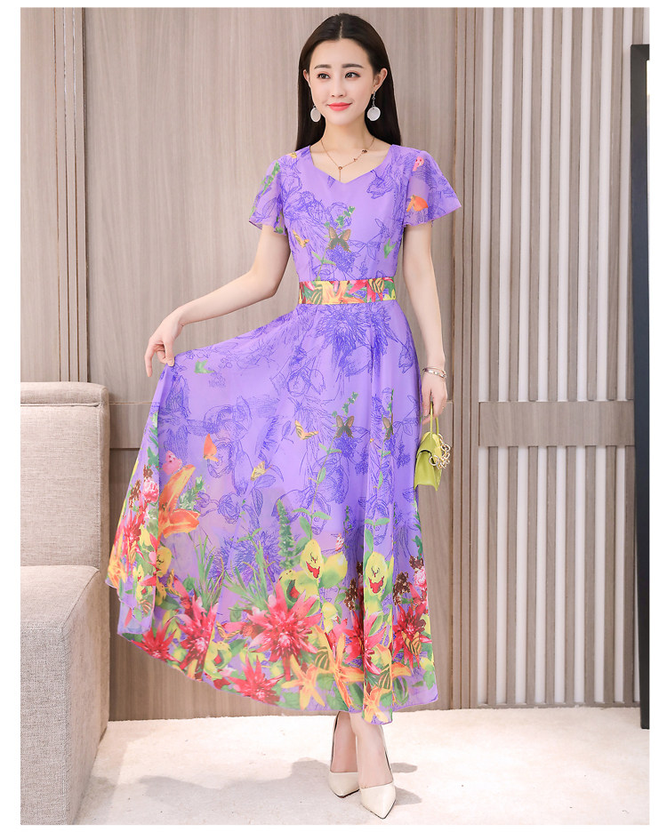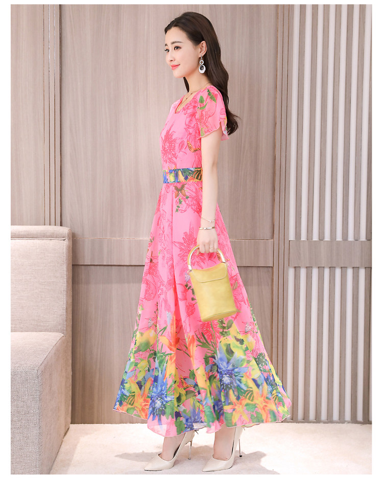 Шифоновое платье для женщин 2018 Новое Женское летнее платье корейское платье Летнее Длинное платье средней длины с короткими рукавами