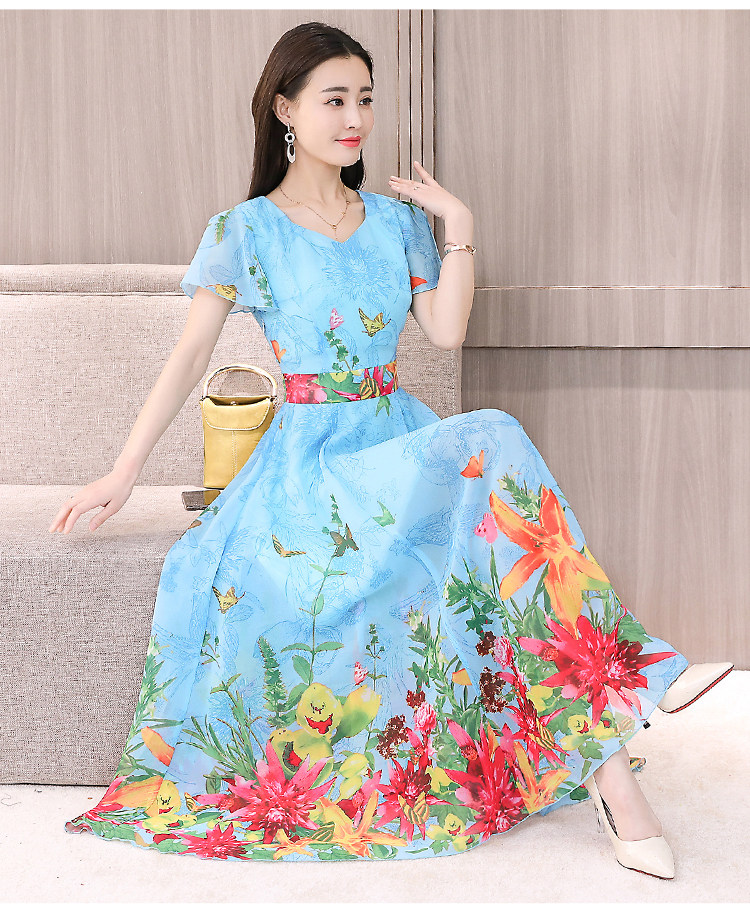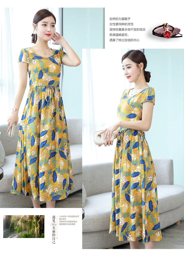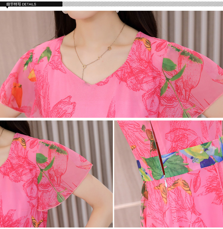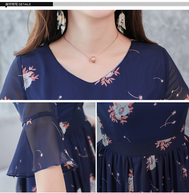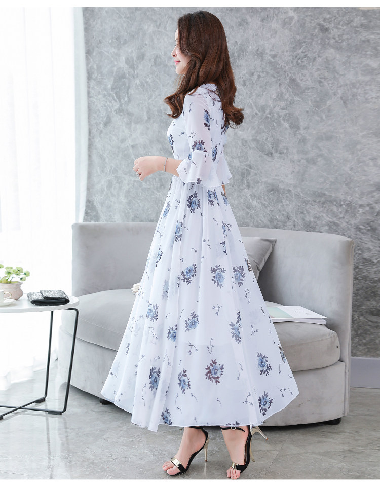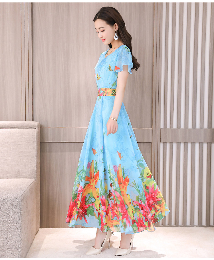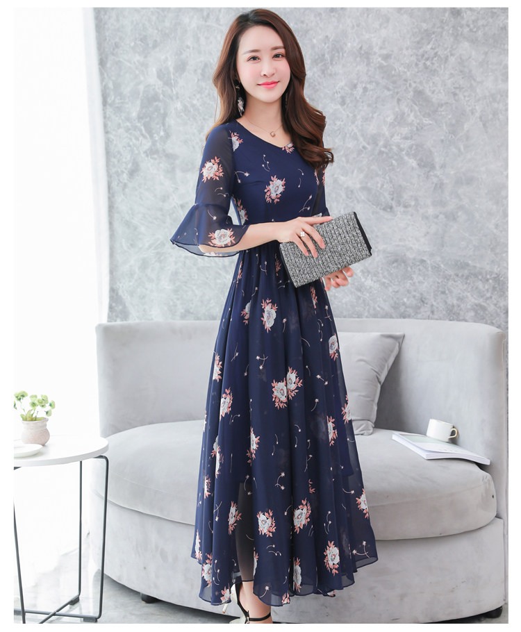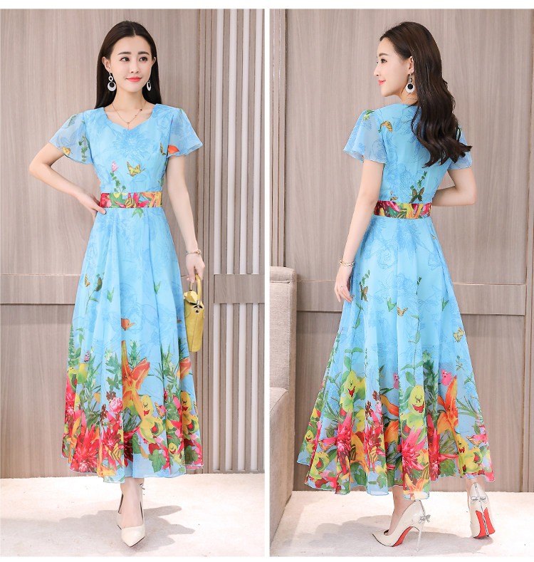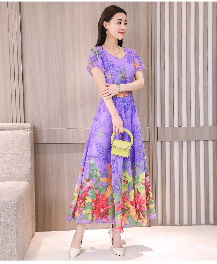 Шифоновое платье для женщин 2018 Новое Женское летнее платье корейское платье Летнее Длинное платье средней длины с короткими рукавами