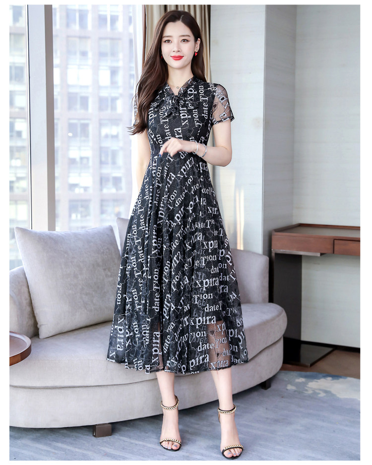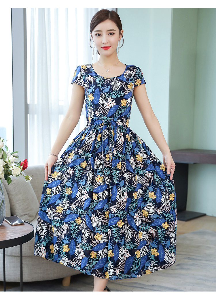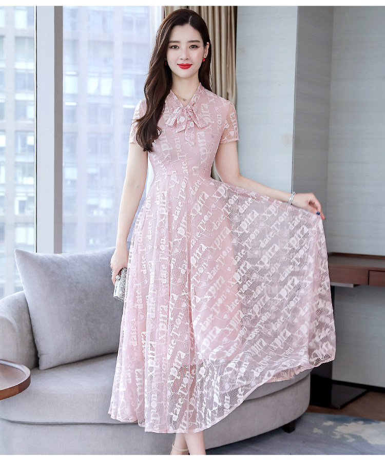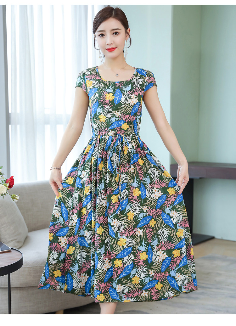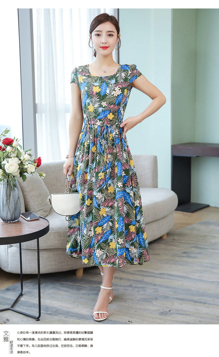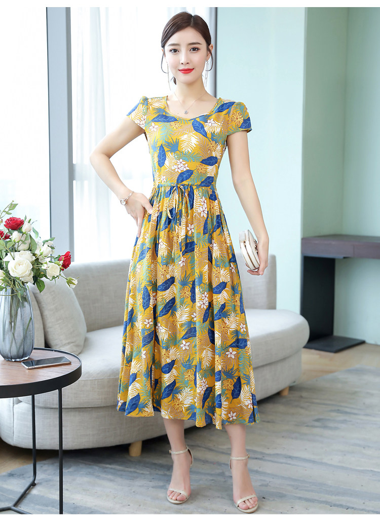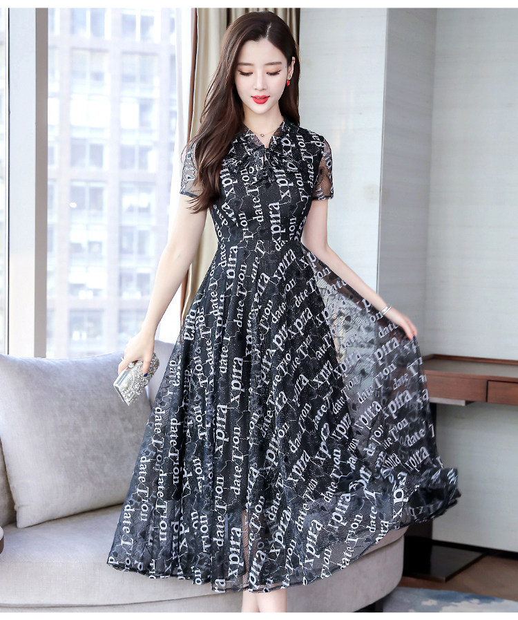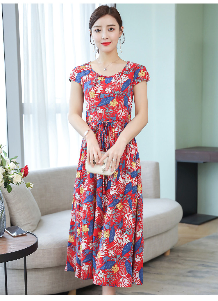 Шифоновое платье для женщин 2018 Новое Женское летнее платье корейское платье Летнее Длинное платье средней длины с короткими рукавами