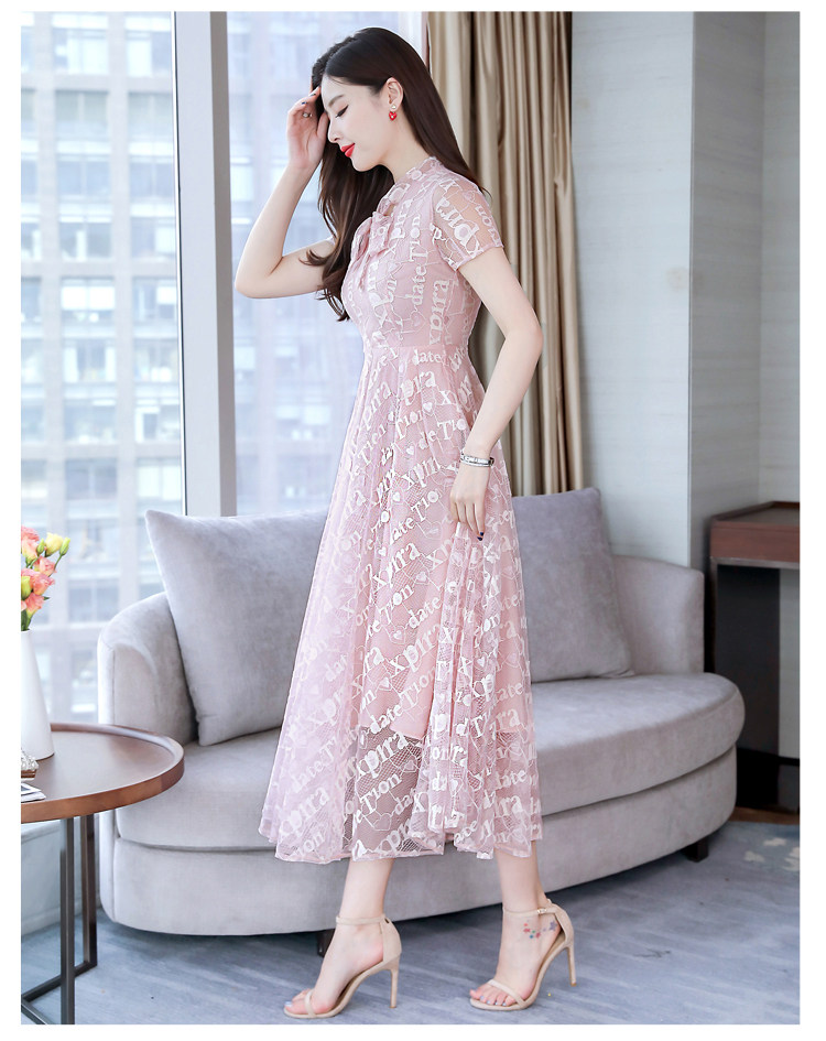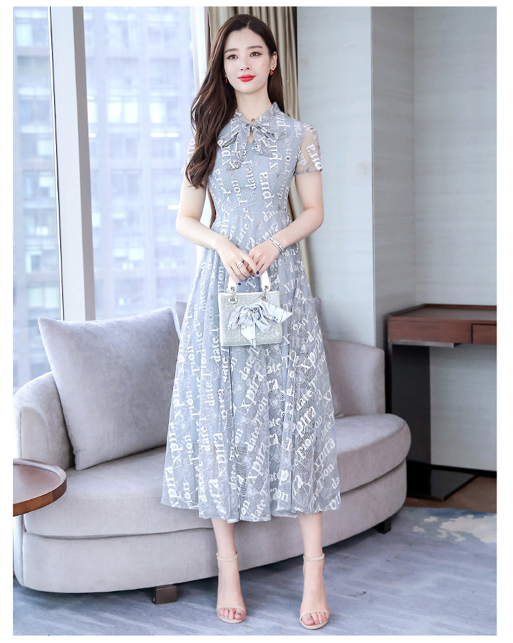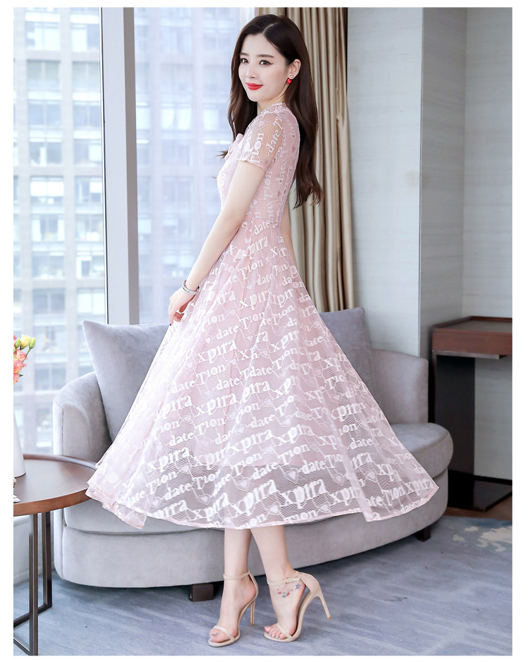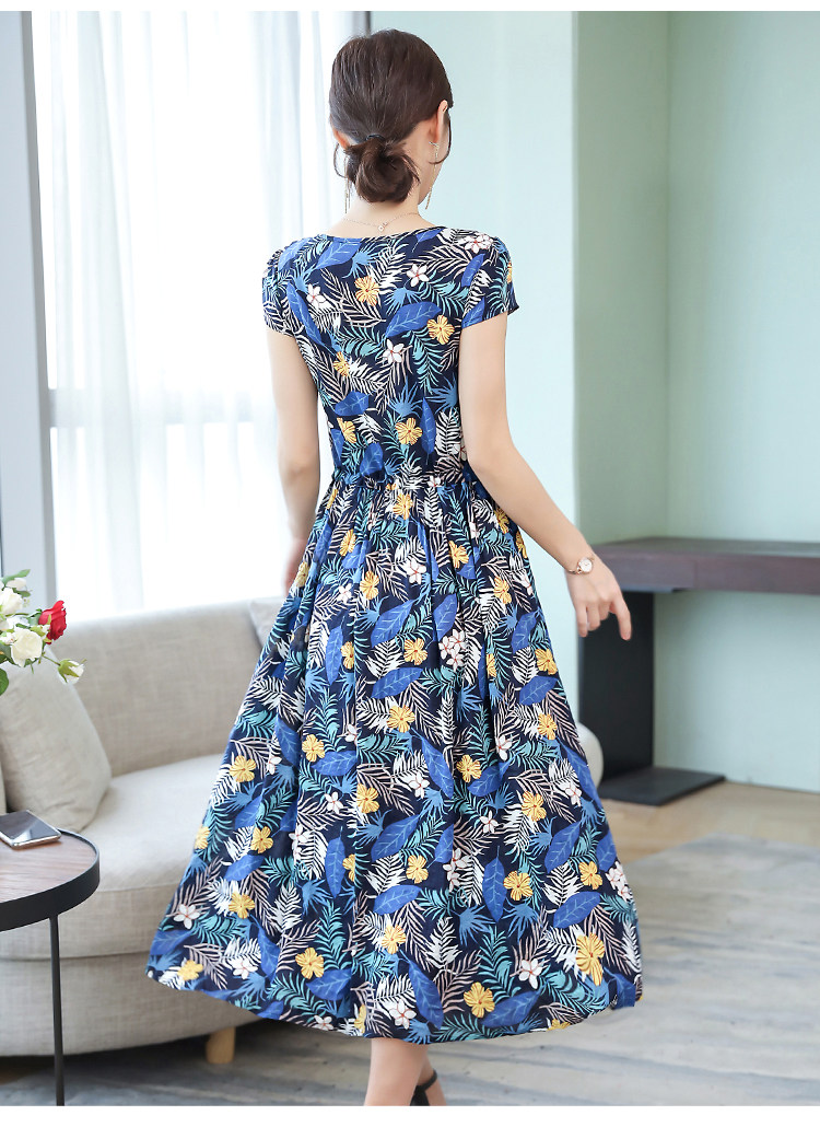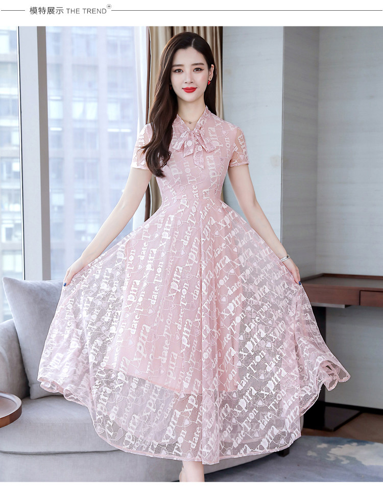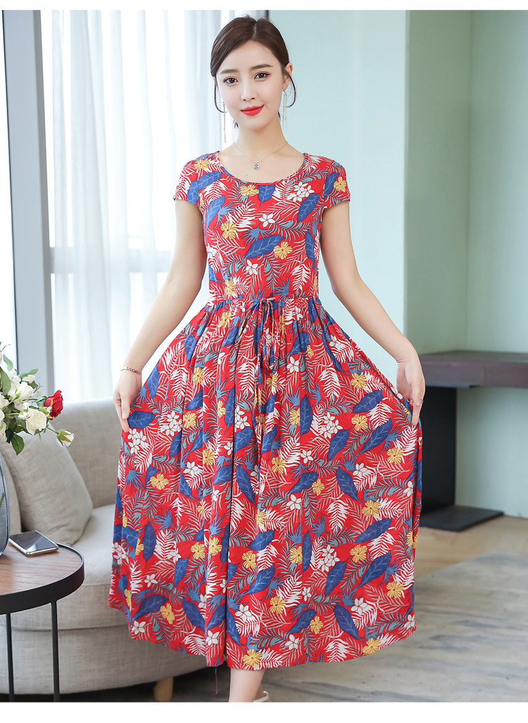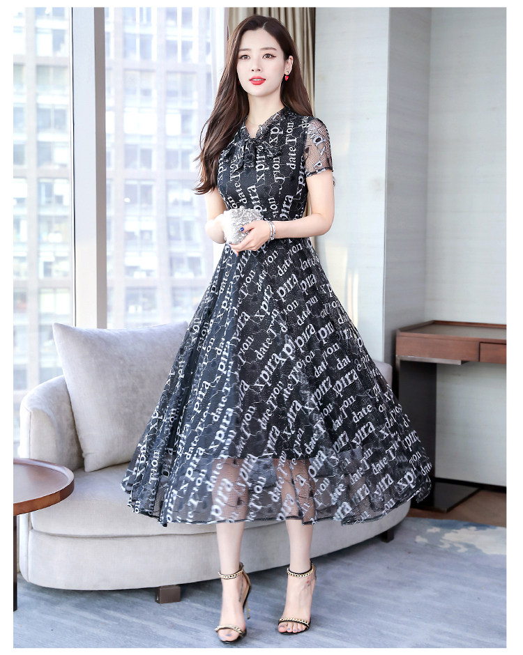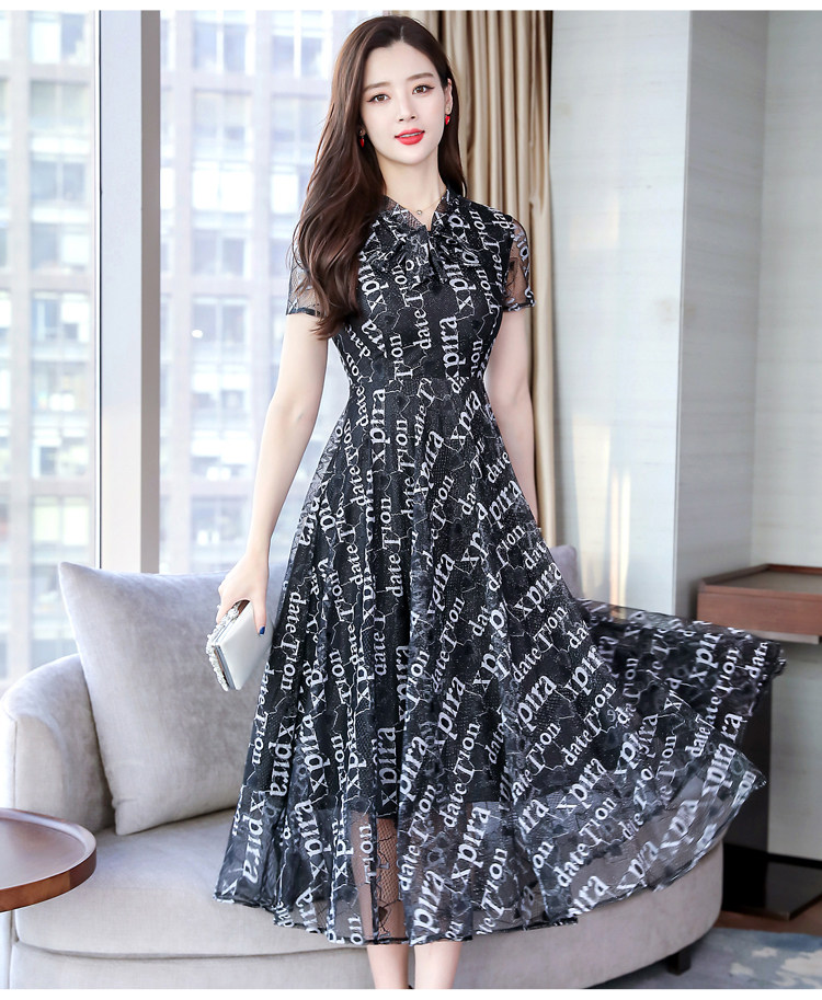 Шифоновое платье для женщин 2018 Новое Женское летнее платье корейское платье Летнее Длинное платье средней длины с короткими рукавами