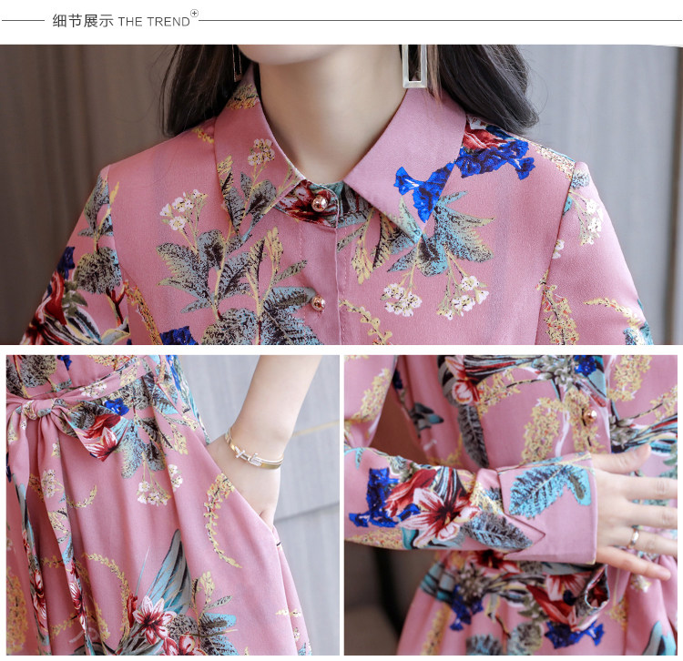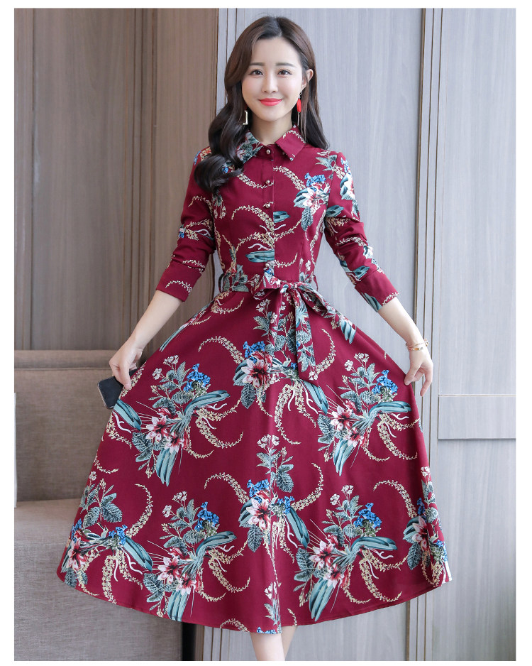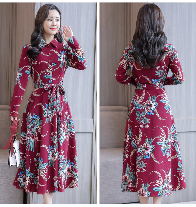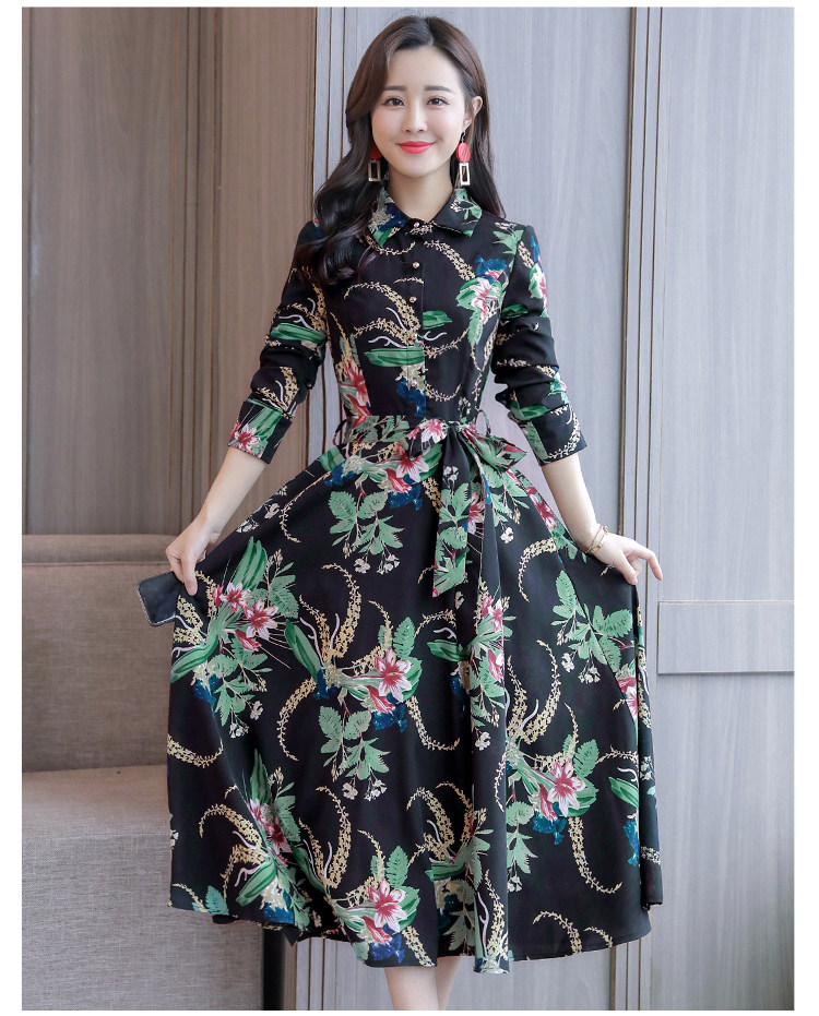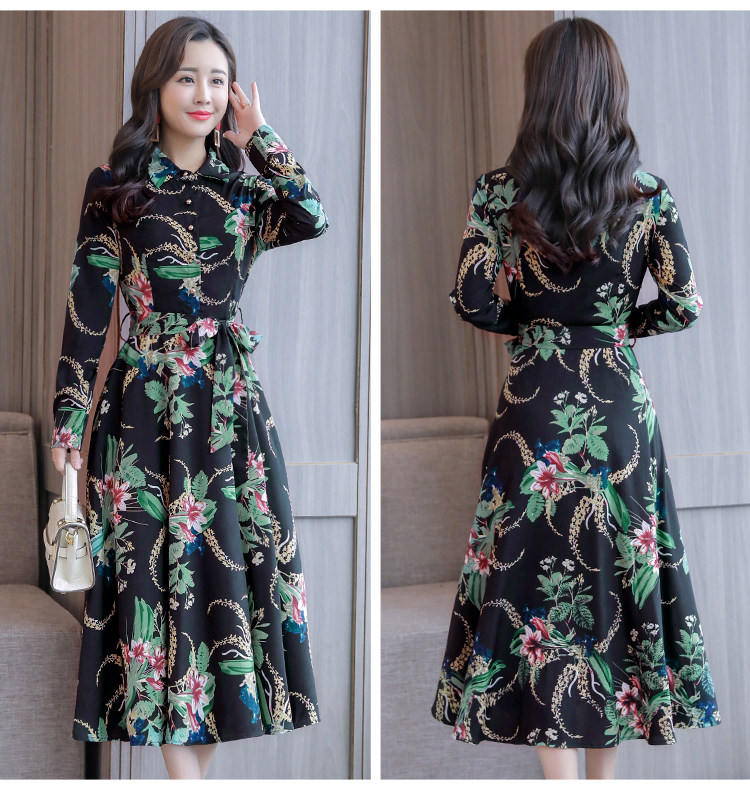 Женское приталенное платье в стиле ретро с длинными рукавами и принтом, весна 2019