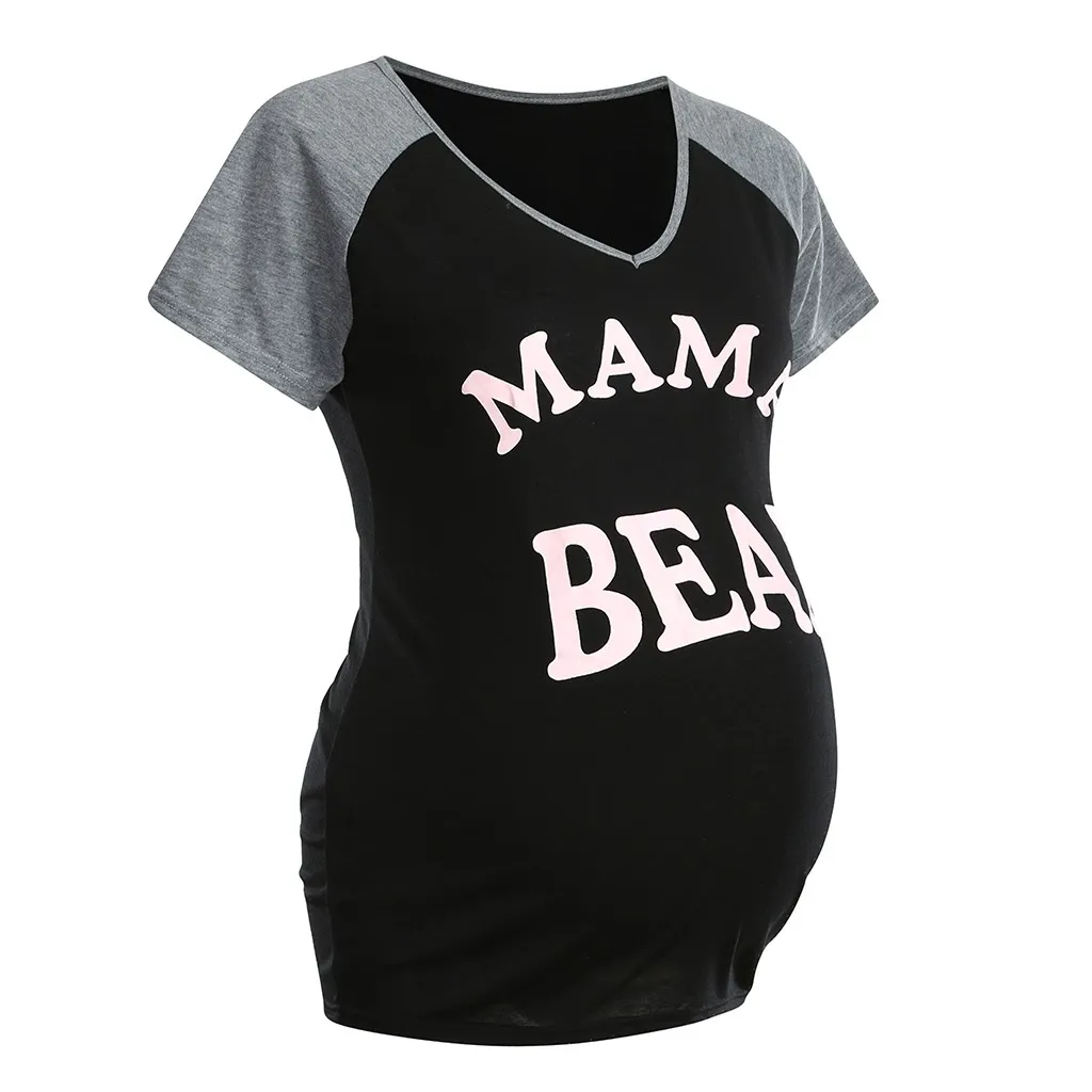 Женская Удобная футболка с коротким рукавом и v-образным вырезом с буквенным принтом для беременных