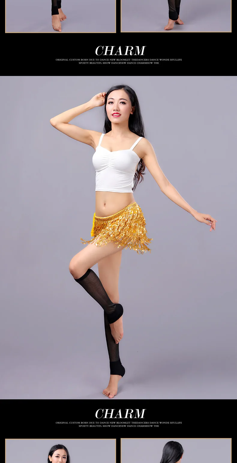 Женский костюм для танца живота, 4-слойный шарф с блестками и кисточками, треугольная одежда для латинских танцев, пояс для танца живота