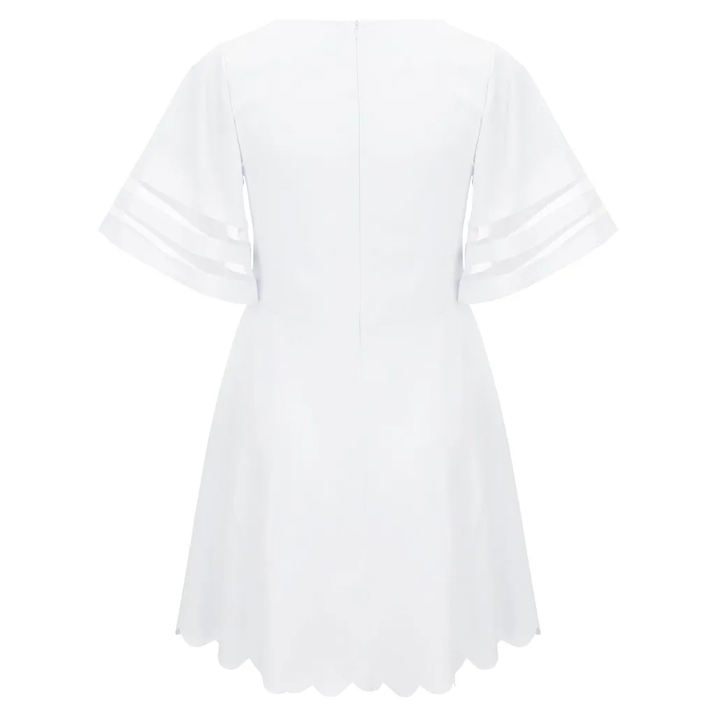 Женская сетчатая блузка с v-образным вырезом и рукавами-колокольчиками 3/4, Свободный Топ с лепестками, платье-рубашка