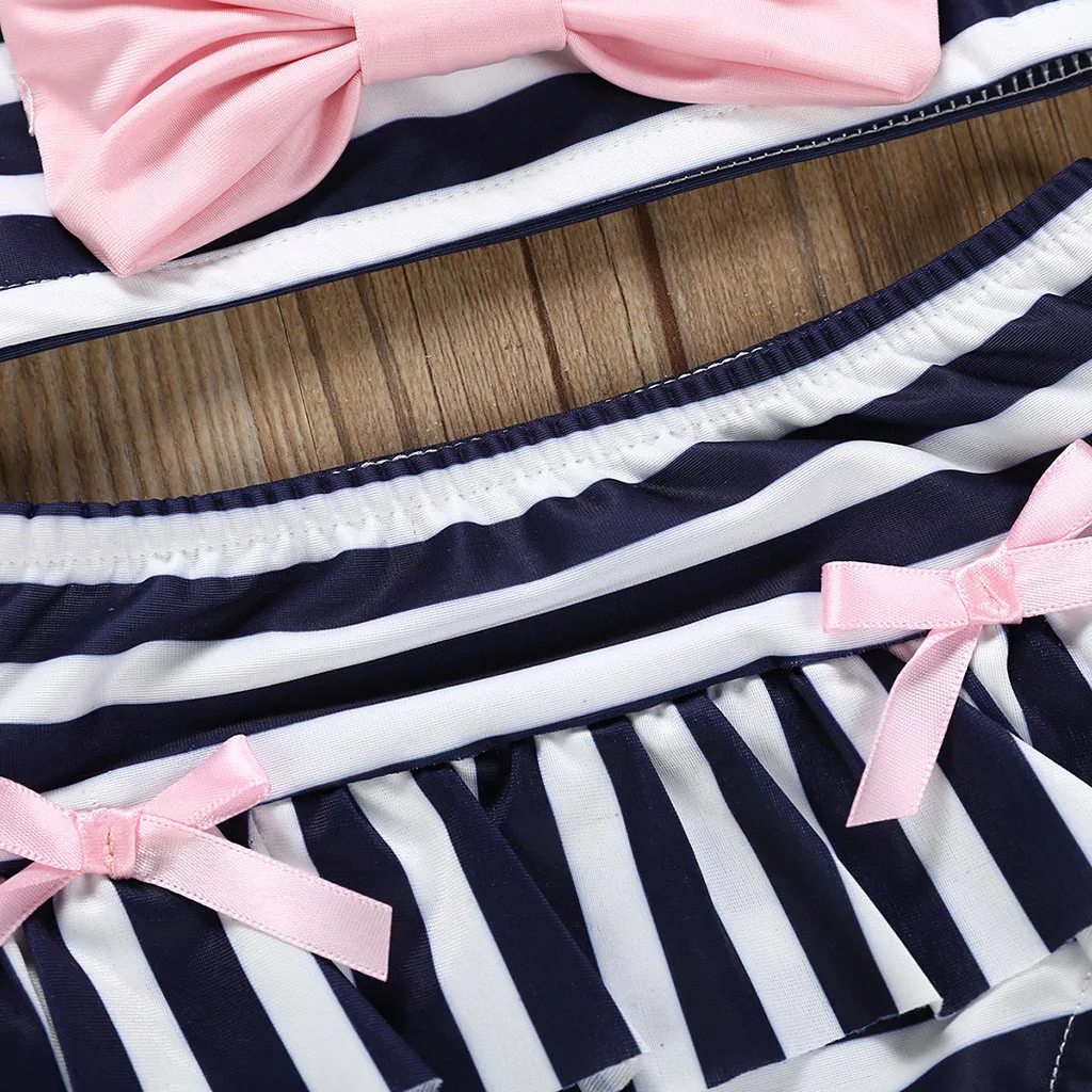 Летний купальный костюм в полоску для маленьких девочек, купальный костюм с бантом, купальный костюм
