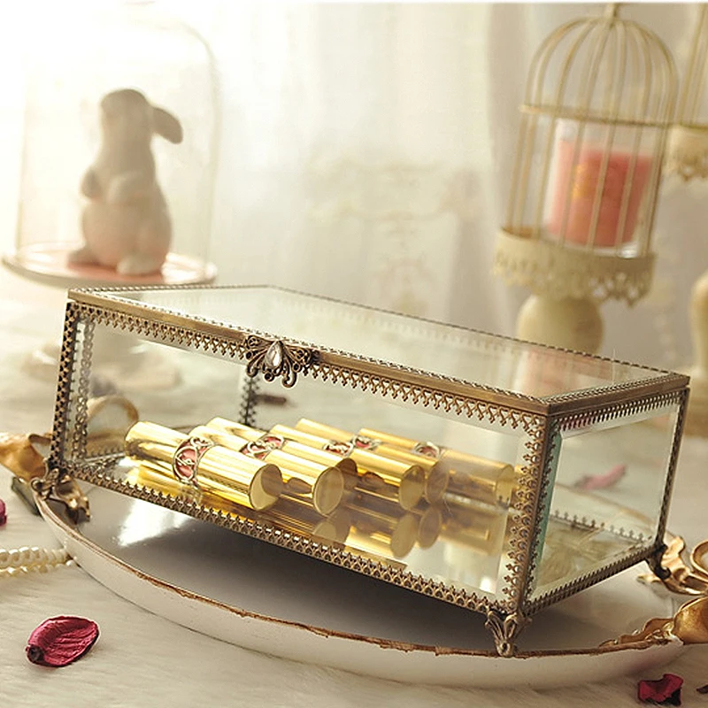 Ретро Изысканный стеклянный ящик для хранения Органайзер для макияжа Ювелирное кольцо для хранения серег шкатулка декоративный туалетный столик