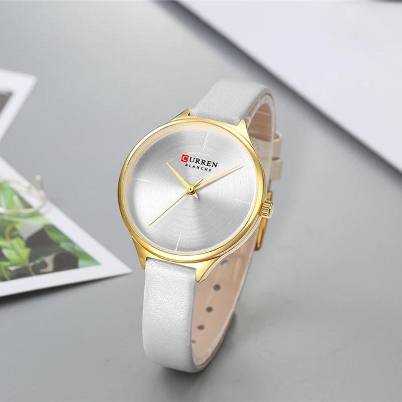 CURREN женские часы, минималистичные наручные часы для женщин, повседневные Модные кварцевые женские часы с кожаным ремешком, простые Стильные Часы