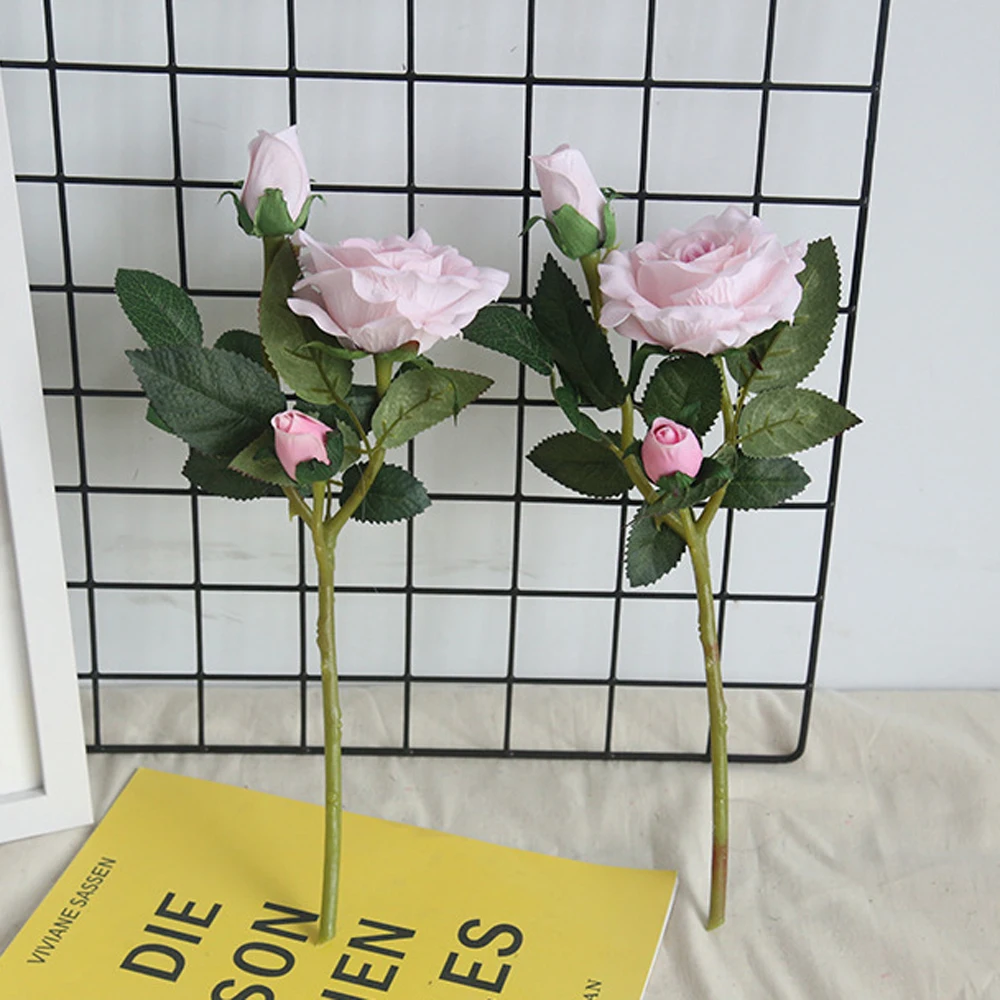 3 головки искусственный цветок яркие настоящие сенсорные розы Искусственный шелк цветок невесты домашний декор для свадьбы Искусственные цветы Шелковый цветок 25