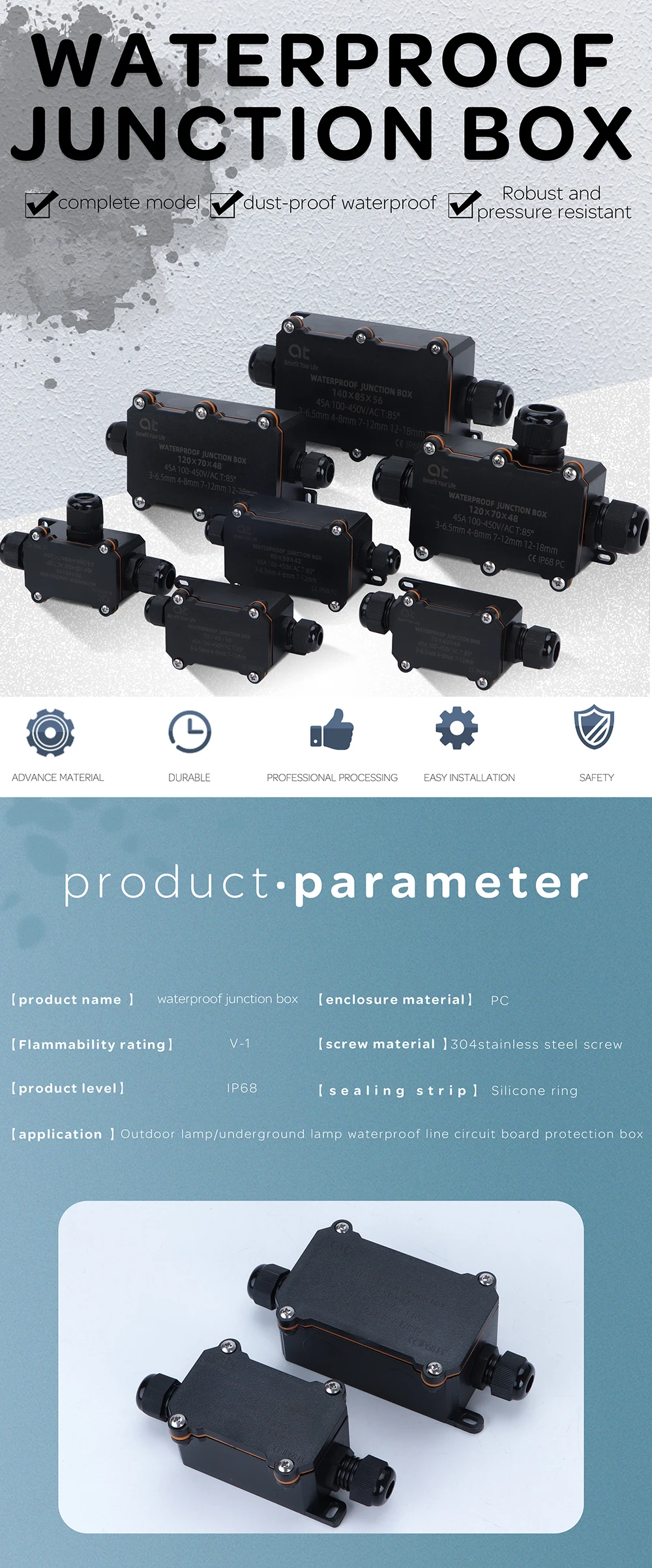 Широкое удобство использования. Распределительные коробки, подходящие для видов светодиодный рекламных щитов, туннельных огней, светодиодный дорожное ландшафтное освещение, светодиодный наружный дисплей, садовые фонари. Дополнительные применения в подводной или подземной инженерии, солнечных водонагревателей, различных машин и оборудования.