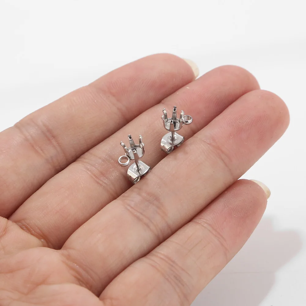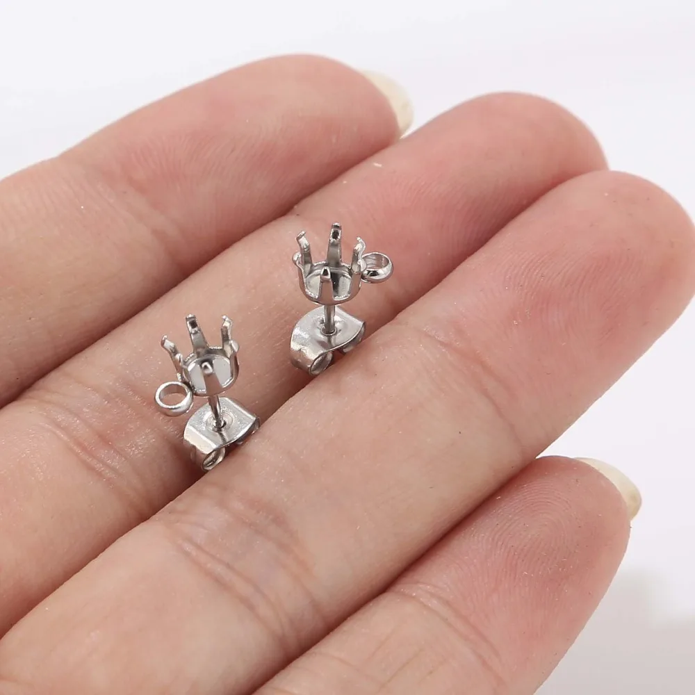20 шт./лот из нержавеющей стали тон оснастки серьги уха шпилька с петлей подходит 6 мм кабошоны и кристалл