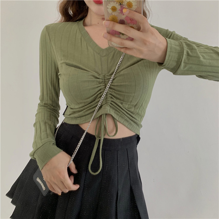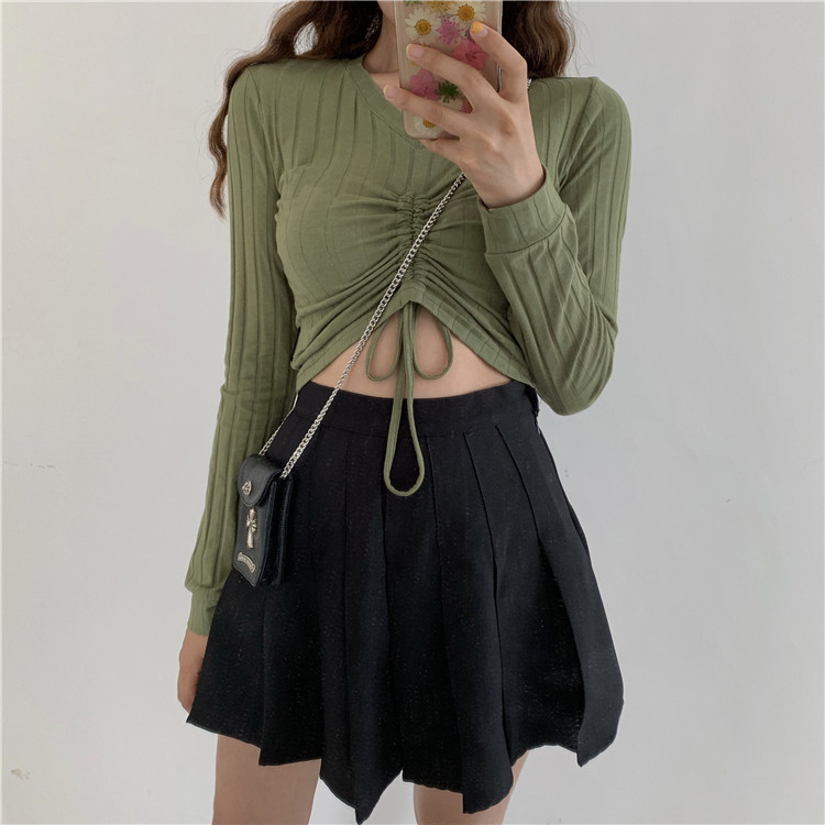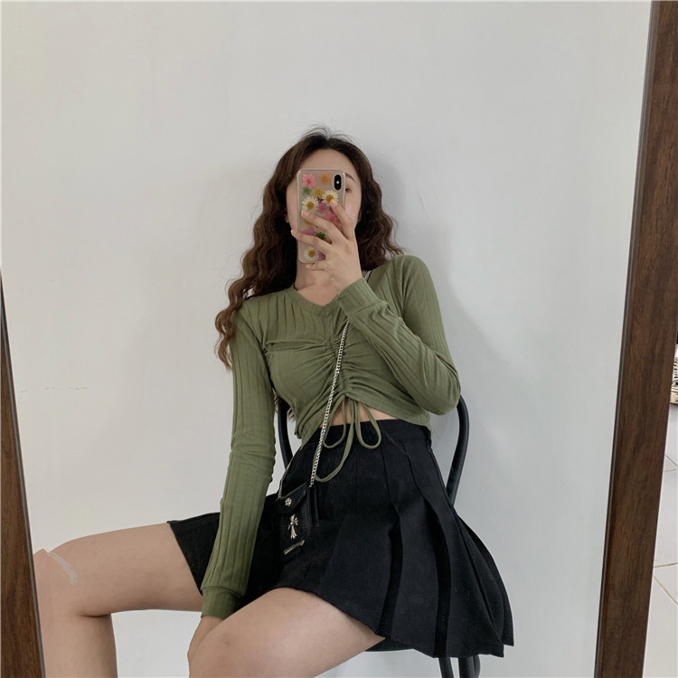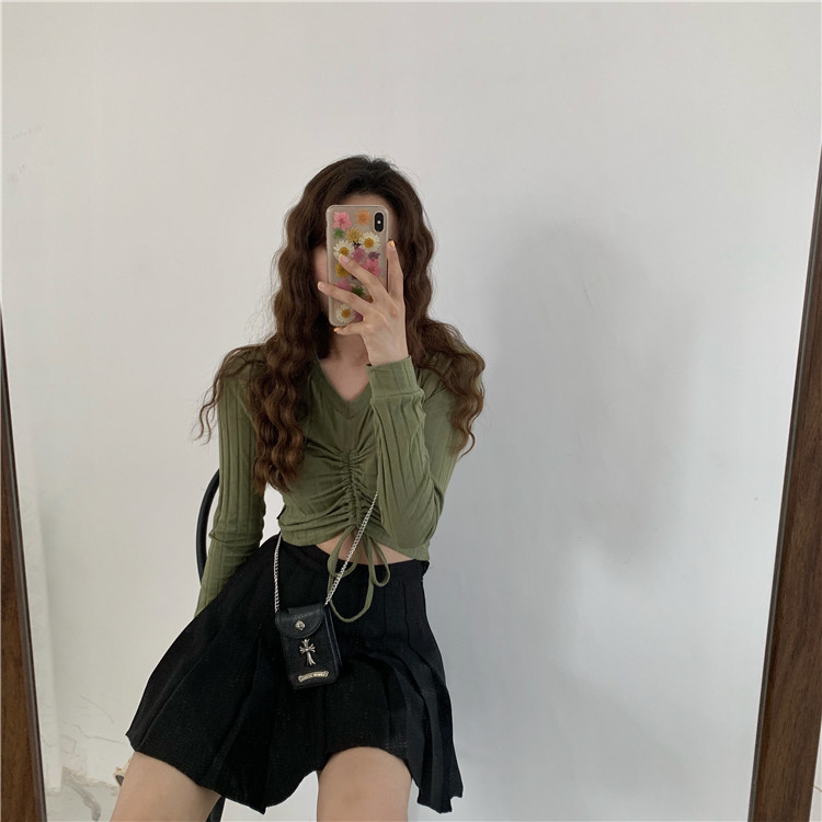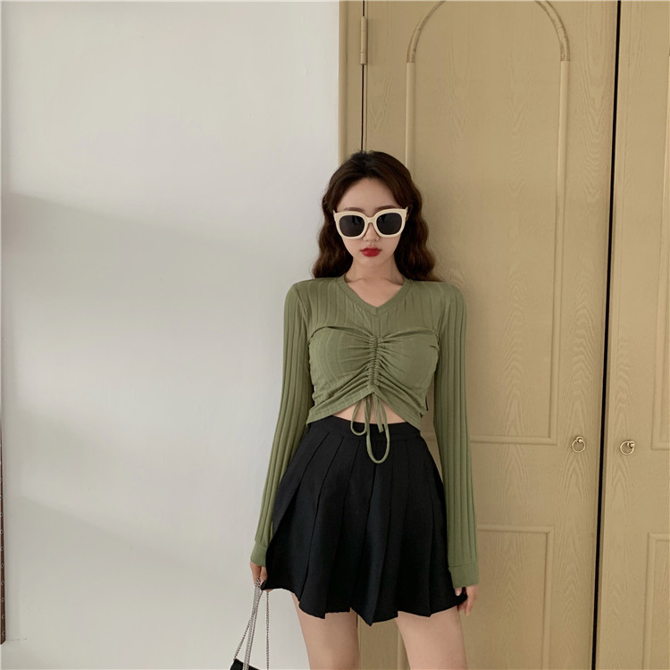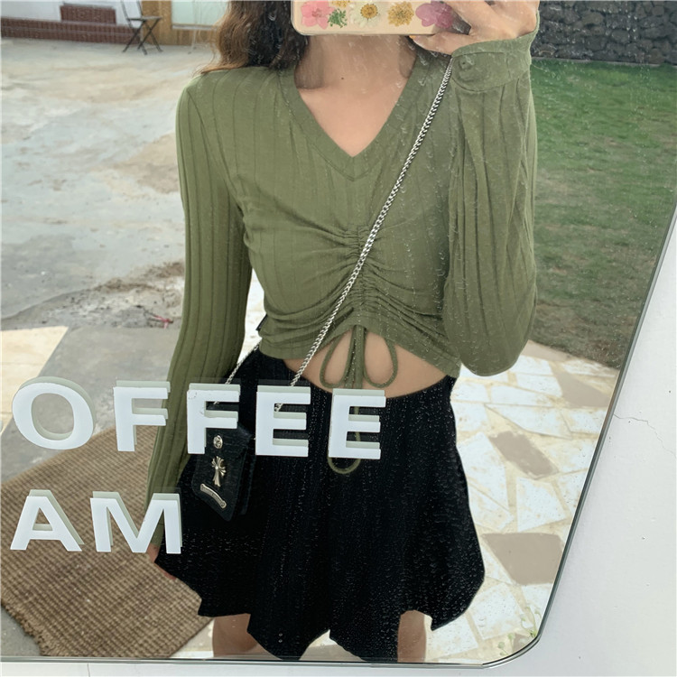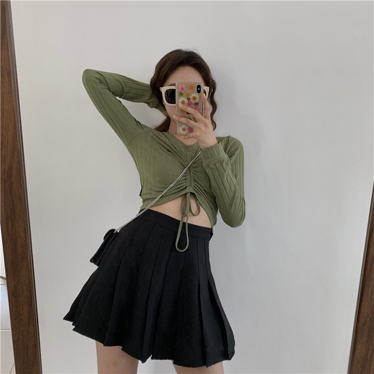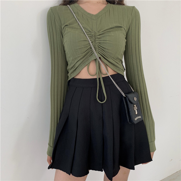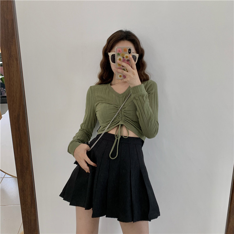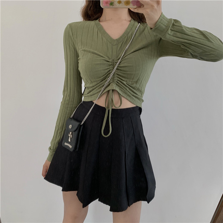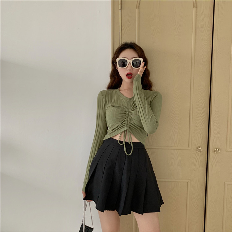 SML комплект из двух предметов Лето 2019 с длинным рукавом v средства ухода за кожей шеи Футболка + Высокая талия мини юбки 2