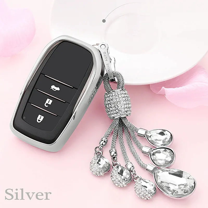 Мягкий ТПУ чехол для ключа автомобиля, защитный чехол для Toyota CROWN Camry COROLLA Tears of the Sky, искусственный Кристальный кулон, 2019