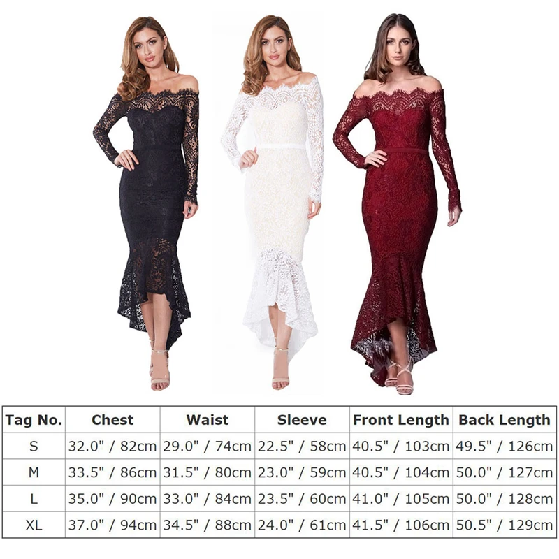Состояние: Новый с бирками Посылка включает в себя: 1 платье Цвет: белый, винно-красный, черный (как показано на фотографии) Материал: полиэстер + кружево Размер: S-XL Особенности: с открытыми плечами, с длинными рукавами, с ажурным кружевом, асимметричный подол, застежка-молния сзади Пол: Для женщин